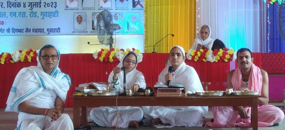 गुवाहाटी। श्री1008 सिद्धचक्र महामंडल विधान का आयोजन अष्टान्हिका पर्व में करने की परंपरा जैन समाज में हजारों वर्षों से चली आ रही है। इसी क्रम में आगामी 4 जुलाई तक होने वाले अष्टान्हिका पर्व का आयोजन एम एस रोड स्थित भगवान महावीर धर्मस्थल में असम के राजकीय अतिथि आचार्य 108 श्री प्रमुख सागर ससंघ के सान्निध्य में किया गया। समारोह आचार्य श्री के 50 वें अवतरण दिवस के उपलक्ष्य पर जबलपुर से आमंत्रित संगीतकार प्रीति जैन एवं पार्टी द्वारा संगीतमय लहरों के साथ तथा बम्बई से आमंत्रित विधानाचार्या बा.ब्र.रचना दीदी, आचार्य श्री की संघस्थ बा.ब्र.बीना दीदी एवं स्थानीय पंडित संतोष कु. शास्त्री के निर्देशन में आयोजित किया जा रहा है।