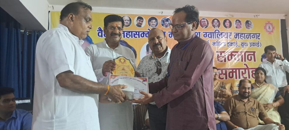 वैश्य महासम्मेलन मध्यप्रदेश युवा इकाई ग्वालियर महानगर द्वारा उमाशंकर गुप्ता प्रदेश अध्यक्ष वैश्य महासम्मेलन मध्यप्रदेश के जन्मदिवस के उपलक्ष में सम्मान दिवस पर ज्योतिषाचार्य डॉ हुकुमचंद जैन को ज्योतिष के क्षेत्र में किए गए उत्कृष्ट व उल्लेखनीय कार्यों के लिए सम्मानित किया गया। पढ़िए मनोज जैन नायक की रिपोर्ट…