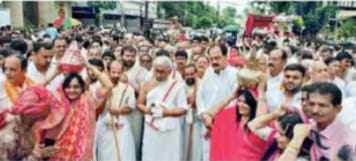 इंदौर। नगर के कंचनबाग में रविवार को आचार्यश्री मृदृरत्नसागर सुरीश्वर महाराज का चातुर्मासिक मंगल प्रवेश हुआ। गाजे-बाजे के साथ आचार्यश्री की शोभायात्रा निकाली गई। आचार्यश्री की अगवानी में श्रीसंघों के साथ ही श्वेतांबर जिनालयों के पदाधिकारी भी बड़ी संख्या में मौजूद रहे। मंगल प्रवेश जुलूस जैसे ही साउथ तुकोगंज से निकला। भक्तों ने जय-जयकार की। आचार्यश्री का यहां 42 साल बाद चातुर्मास निर्धारित हुआ है। श्री नीलवर्णा पार्श्वनाथ श्वेतांबर मूर्तिपूजक ट्रस्ट एवं चातुर्मास समिति के अध्यक्ष अशोक बाफना और विजय मेहता ने बताया कि आचार्यश्री के साथ मुनि मोक्षरत्नसागर, मुनि पवित्ररत्नसागर का सान्निध्य भी श्रावक-श्राविकाओं को मिला।