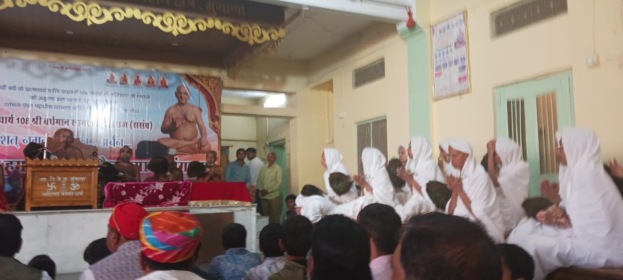 मुंगाना। आचार्य श्री शांति सागर जी महाराज की अक्षुण्ण मूल बाल ब्रह्मचारी परंपरा के पंचम पट्टाधीश आचार्य श्री वर्धमान सागर जी महाराज का पारसोला से विहार कर संघ सहित मुंगाना 8 फरवरी को भव्य मंगल प्रवेश हुआ । सब्र का फल मीठा होता है। बहुत प्रतीक्षा के बाद वर्षों के पुण्य से आपको यह लाभ मिला है। काफी वर्षों के बाद संघ का आगमन यहां हुआ है। इसके पूर्व हमारे दीक्षा गुरु आचार्य श्री धर्म सागर जी के साथ आए थे। आचार्यश्री शिवसागर जी भी यहां आ चुके हैं। साधु समागम कठिनता से प्राप्त होता है।