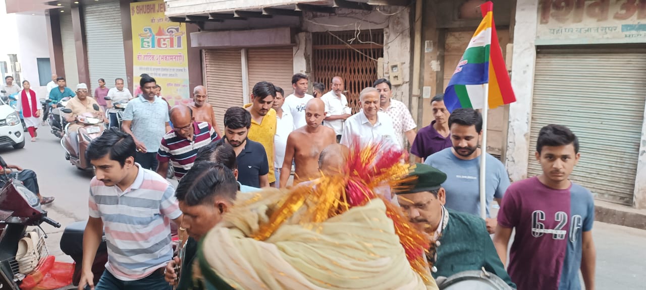 आगरा। मेडिटेशन गुरु उपाध्याय श्री विहसंतसागर जी महाराज एवं मुनिश्री विश्वसम्य सागर जी महाराज ससंघ 29 मई को आगरा के अवधपुरी कॉलोनी से अलबतिया, रामनगर की पुलिया, शंकरगढ़ की पुलिया, जयपुर हाउस, कोठी मीना बाजार, नालबंद चौराहा, आगरा कॉलेज मोती कटरा चौराहा से होते हुए बैण्ड बाजों के साथ मंगल विहार कर मोती कटरा स्थित श्री सभंवनाथ दिगम्बर जैन बड़ा मन्दिर पहुंचे। उपाध्यायश्री के मंगल विहार के दौरान श्वेतांबर जैन साध्वी ने उपाध्याय श्री के दर्शन किए और मंगल विहार की चर्चा की।