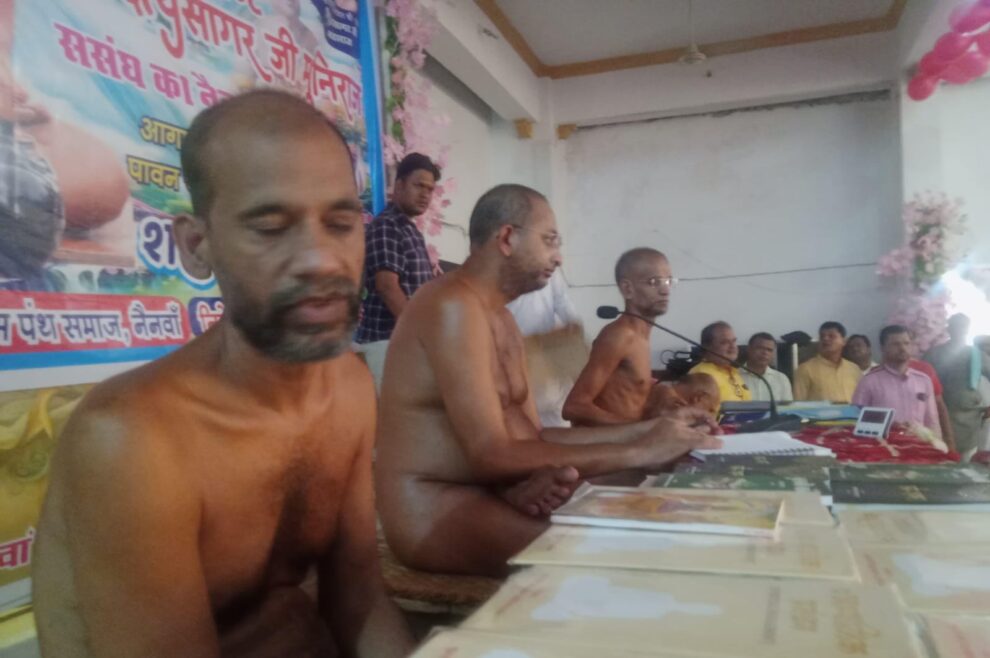 नैनवां में बुधवार सुबह 7 बजे की संपूर्ण दिगंबर जैन समाज ने गाजे-बाजे और जय घोष से कृष्ण मैरिज गार्डन में मुनि श्री आदित्य सागर जी संघ की अगवानी की। जगह-जगह मुनिसंघ का पाद प्रक्षालन कर पुष्प वर्षा की गई। महाराज श्री संघ सहित शहीद भगतसिंह सर्किल होते हुए शांति वीर धर्मस्थल पहुंचे। जहां पर मुनिसंघ ने जिनालय के दर्शन किए। अग्रवाल बड़े मंदिर में धर्मसभा हुई। नैनवा से पढ़िए, अभिषेक जैन लुहाड़िया की यह खबर…