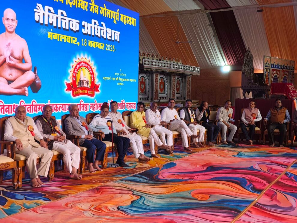 सागर। अखिल भारतवर्षीय दिगंबर जैन गोलापूर्व महासभा का नैमित्तिक अधिवेशन सागर के सिरोंजा में हुआ। संतोष कुमार जैन घड़ी परिवार द्वारा बीटीआईआरटी में निर्मित जिनालय के श्रीमद जिनेंद्र पंचकल्याणक एवं शांतिनाथ जिन बिम्ब प्रतिष्ठा महोत्सव में इसका आयोजन किया गया। आचार्य श्री विशुद्ध सागर जी महाराज के ससंघ सानिध्य में महोत्सव जारी है। अधिवेशन में कर्नाटक राज्य के श्रवणबेलगोला में महासभा द्वारा गोल्लाचार्य स्मारक बनाने के पूर्व में लिए गए निर्णय को तेज गति से प्रक्रिया आगे बढ़ाने पर सर्वसम्मति से निर्णय लिया गया। अधिवेशन मे मुख्य यजमान संतोष कुमार जैन घड़ी ने कहा मंदिर निर्माण में व्यस्त होने के कारण श्रवणबेलगोला में निर्मित होने वाले गोलचार्य स्मारक के कार्य में शिथिलता रही परंतु, अब इस का निर्माण अतिशीघ्र किया जाएगा। प्रतिष्ठाचार्य ब्रह्म. जय निशांत, डॉ.भागचंद जैन भागेन्दु, पंडित विनोदकुमार सनत कुमार जैन रजवांस, आशीष शास्त्री बम्होरी, राष्ट्रपति पुरस्कार प्राप्त सुरेंद्र भगवां डॉ. हरिश्चंद्र जैन, राजकुमार शास्त्री, महेंद्र सिंघई बड़ागांव, कपिल मलैया, सुभाष चंद्र चौधरी, देवेंद्र लुहारी, संतोष बैटरी अध्यक्ष,सुभाष कटनी , प्रेमचंद बरेठी, श्रेयांस कुमार संग सेल्स महामंत्री, डॉ. अरविंद कुमार जैन, सुरेंद्र खुर्देलीय, विनोद कोतमा, सौरभ बूंद एवं समस्त पदाधिकारी एवं सदस्यों की उपस्थिति में गोल्लाचार्य स्मारक के निर्माण को लेकर चर्चा हुई। जिसमे बताया गया कि स्मारक को लेकर पूर्व में ही श्री भट्टारक चारूकीर्ति स्वामी जी ने महासभा को इस कार्य हेतु आशीर्वाद एवं आश्वासन दिया था। जिसको लेकर अब प्रयास तेज किये जा रहे हैं।