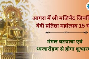 आगरा। आगरा की नॉर्थ ईदगाह कॉलोनी स्थित श्री 1008 आदिनाथ दिगंबर जैन मंदिर में 15 से 18 जनवरी तक श्री 1008 मजिनेंद्र जिनबिंब वेदी प्रतिष्ठा महोत्सव कलशारोहण एवं...