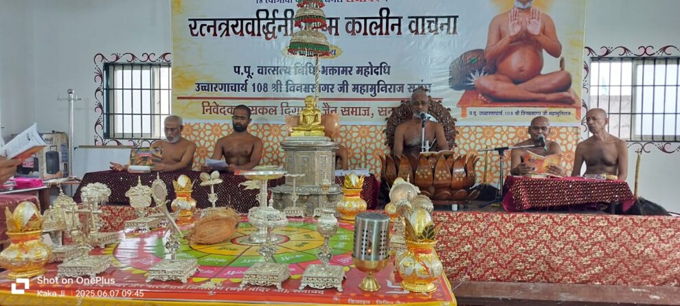 ग्रीष्मकालीन वाचना के लिए सनावद में विराजित परम पूज्य उच्चारणाचार्य श्री विनम्रसागर जी महामुनिराज के 23वें गुरु उपकार दिवस के उपलक्ष्य में तीन दिवसीय कार्यक्रम आयोजित किया जा रहा है। कार्यक्रम के दूसरे दिन आचार्य संघ के सान्निध्य में आचार्य शांतिसागर वर्धमान देशना निलय में भक्तामर मंडल विधान संपन्न हुआ। पढ़िए सन्मति जैन काका की विशेष रिपोर्ट…