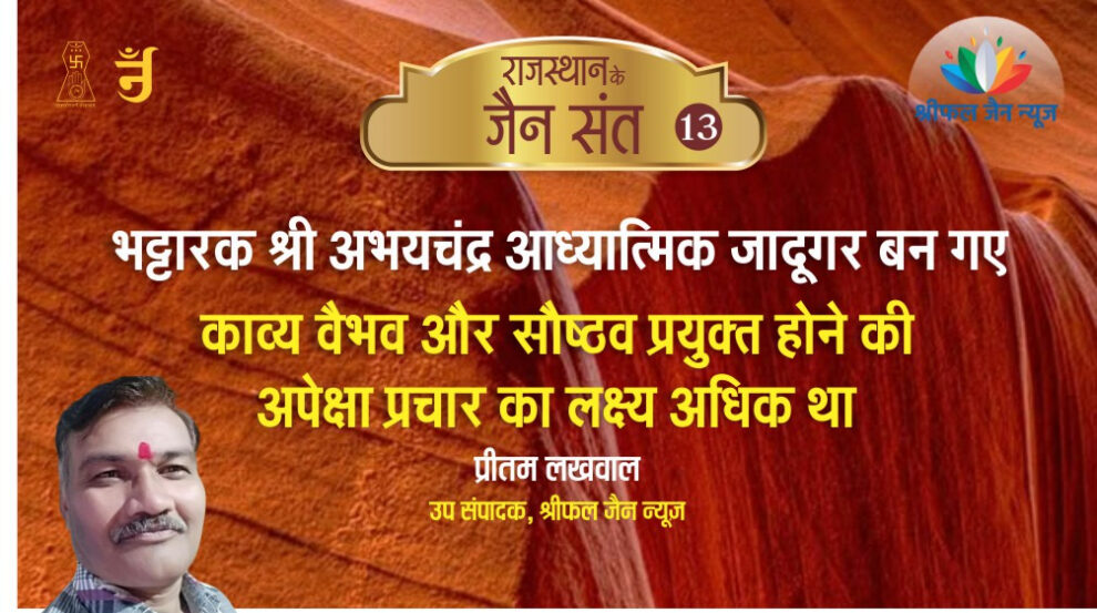 राजस्थान के जैन संतों ने जहां अपनी साधुता से जन-जन में आध्यात्मिक चेतना से जनजागरण किया। वहीं उनकी साहित्य साधना ने हिन्दी साहित्य को उस समय खूब समृद्ध किया। संतों का साहित्य के प्रति समर्पण के कारण जैन धर्म को आगे बढ़ाने में सफलता मिली। जैन धर्म के राजस्थान के दिगंबर जैन संतों पर एक विशेष शृंखला में 13वीं कड़ी में श्रीफल जैन न्यूज के उप संपादक प्रीतम लखवाल का भट्टारक श्री अभयचंद्रजी के बारे में पढ़िए विशेष लेख…..
