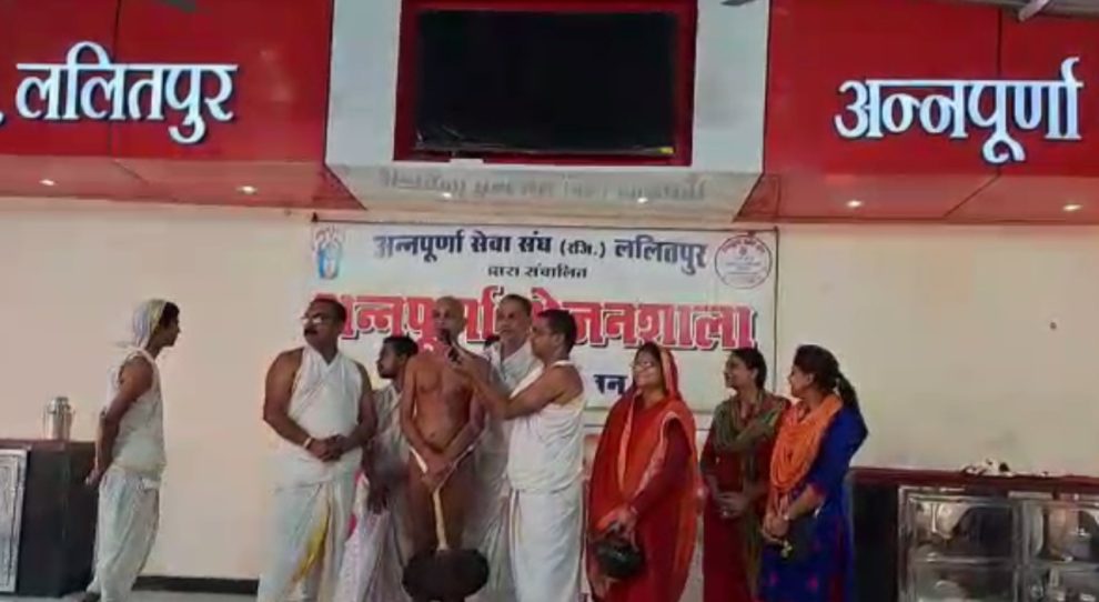 ललितपुर (राजीव सिंघई)। निर्यापक श्रमण 108 श्री सुधा सागर जी महाराज के संघ के एलक श्री धैर्य सागर जी महाराज मंगलवार को अन्नपूर्णा सेवा संघ द्वारा संचालित अन्नपूर्णा भोजन शाला में दोपहर की भोजन चर्या के दौरान पहुंचे। यहां पर उन्होंने उपदेश देते हुए कहा कि आप भले ही किसी भी धर्म के हों लेकिन आपका धर्म भी आपको यह सिखाता है कि जूते-चप्पल उतार कर और पूरी शुद्धि के साथ आप भोजन करें। भोजन का कभी अपमान ना करें। उतना ही लो थाली में व्यर्थ ना जाए नाली में।