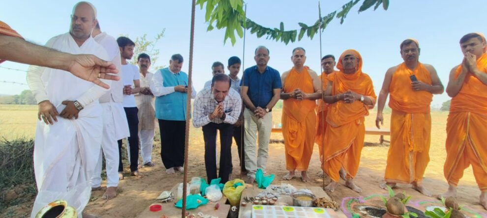 कुण्डलपुर। 21 मार्च सुप्रसिद्ध श्री दिगंबर जैन सिद्धक्षेत्र कुंडलपुर में आगामी 16 अप्रैल 2024 को आयोजित होने जा रहे आचार्य पद पदारोहण अनुष्ठान महामहोत्सव हेतु समारोह स्थल पर भूमि पूजन का कार्यक्रम आयोजित हुआ। इस अवसर पर राजेंद्र जैन वास्तु इंदौर ने भूमि पूजन का कार्यक्रम संपन्न कराया। पूज्य बड़े बाबा के चरणों में श्रीफल समर्पित कर पूजा अर्चना आज्ञा के पश्चात वास्तु विधान किया गया ।