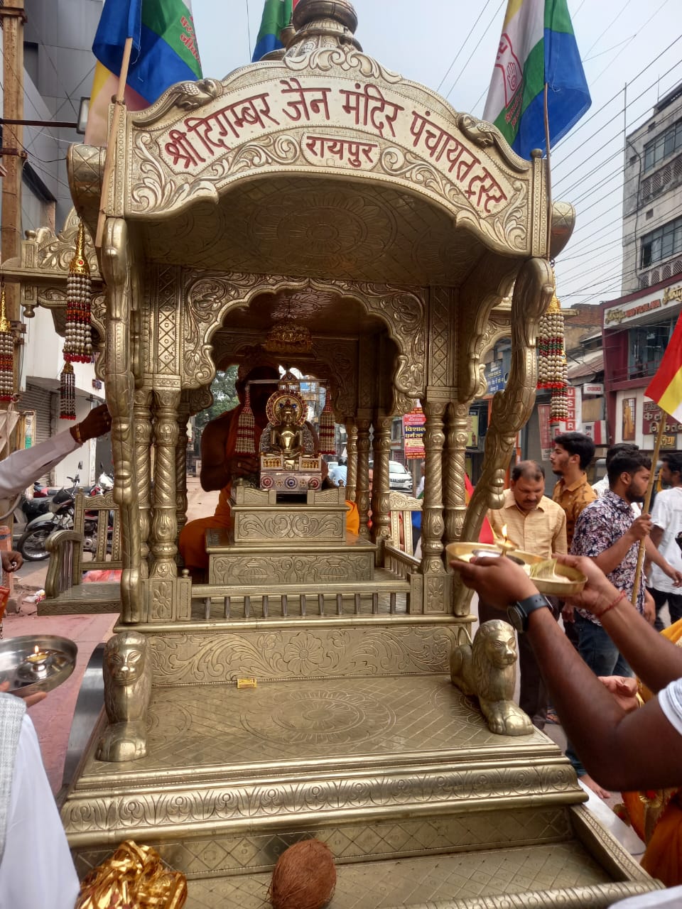 जिसमें पुरुष वर्ग पारंपरिक परिधान कुर्ता पैजामा में एवं महिलाएं केसरिया साड़ी में आएंगी। यह शोभा यात्रा मालवीय रोड स्थित बड़ा मंदिर से सदर बाजार, एडवर्ड रोड, आर एस शुक्ल रोड होते हुए वापस बड़ा मंदिर आएगी तत्पश्चात 8.30 बजे श्री जी का अभिषेक, शांतिधारा, आरती एवं पूजन किया जाएगा। कार्यक्रम पश्चात उपस्थित साधार्मीक धर्मप्रेमी बंधुओं के लिए अल्पाहार की व्यवस्था भी रखी गई है।