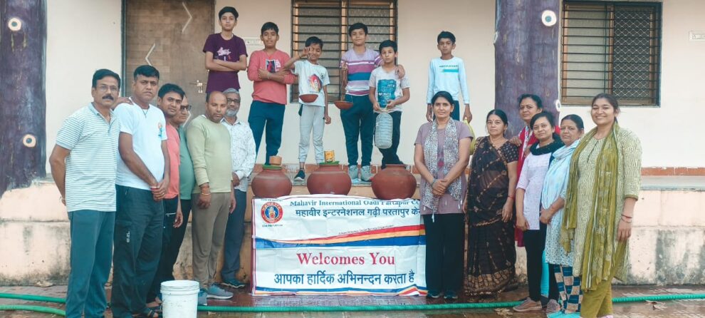 गढ़ी परतापुर। महावीर इंटरनेशनल की ओर से भगवान आदिनाथ जन्म और तप कल्याणक पर्व पर स्थानीय नवयुवक मंडल खेल मैदान के बाहर यात्रियों एवं आम जन को पेयजल सुलभ कराने चार मिट्टी के मटके लगाकर अस्थाई शीतल जल प्याऊ प्रारंभ की गई। जो पूरी गर्मियों में लोगों को राहत प्रदान करेगी। महावीर इंटरनेशनल के गवर्निंग काउंसिल सदस्य अजीत कोठिया ने बताया कि प्रातः सीबीइओ महेंद्र समाधियां के मुख्य आतिथ्य, परमेश्वर पाटीदार की अध्यक्षता एवं रामभरत चेजारा के संयोजन में हुए समारोह में गार्डन में पेड़ों पर पक्षियों के पेयजल प्रबंधन के लिए मिट्टी के सकोरे स्थापित कर किए गए। साथ ही समाजजनों को सकोरा वितरण भी किया गया।
