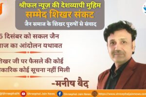 मनीष गोधा- शाश्वत तीर्थ श्री सम्मेद शिखर जी को पर्यटन स्थल घोषित किए जाने के विरोध में देश भर में आंदोलन चल रहे हैं । जैन समाज सडकों पर है और पूरे देश...