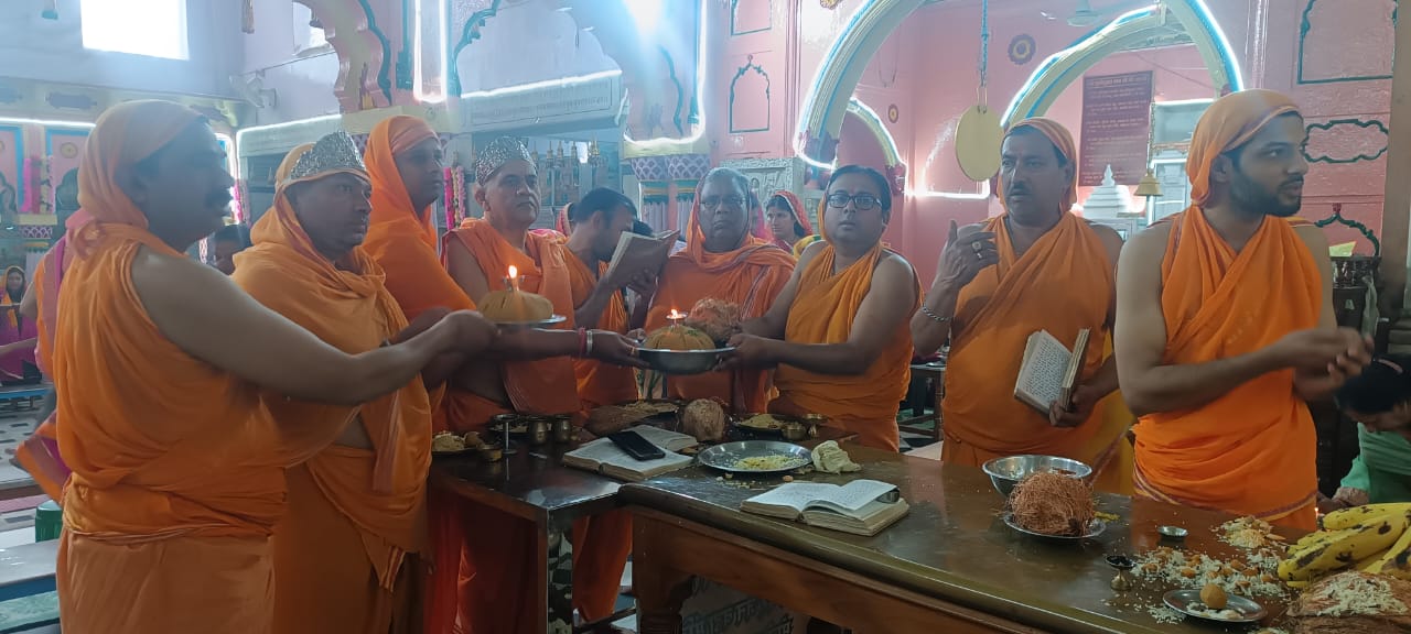 आगरा ।14 अप्रैल को परम पूज्य आचार्य श्री विज्ञान भूषण जी महाराज के सानिध्य में अतिशयकारी श्री संभवनाथ दिगंबर जैन बड़ा मंदिर मोती कटरा आगरा में सकल दिगम्बर जैन समाज मोती कटरा के तत्वावधान में श्री 1008 संभवनाथ भगवान के मोक्षकल्याणक दिवस के पावन अवसर पर संभवनाथ विधान एवं निर्वाण लाडू महोत्सव का आयोजन हुआ| यह आयोजन आगरा के मोती कटरा स्थित श्री अग्रवाल दिगम्बर जैन बड़ा मन्दिर में बडे़ ही हर्षोल्लास के साथ किया गया। भक्तों ने सर्वप्रथम स्वर्ण कलशों से सभी प्रतिमाओं का अभिषेक कर वृहद शांतिधारा की|