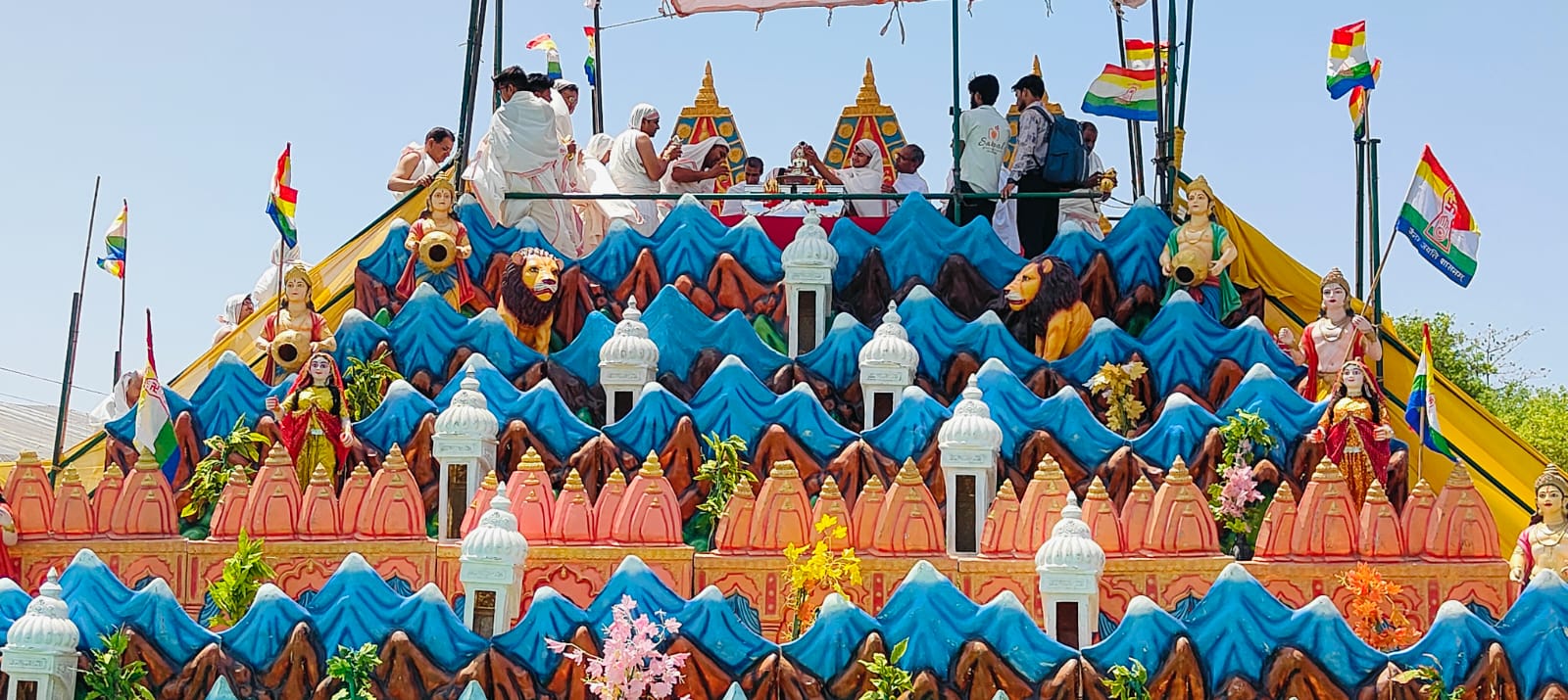 बड़ामलहरा। सकल दिगंबर जैन समाज, श्री मुमुक्षु आश्रम कोटा एवं श्री कुंदकुंद कहान आदिनाथ दिगंबर जैन मंदिर विश्वास नगर दिल्ली के तत्वावधान में शिवपुरी शहर में आयोजित हो रहे श्री नेमिनाथ दिगंबर जिनबिंब पंचकल्याणक महोत्सव के तृतीय दिवस जन्मकल्याणक महोत्सव की खुशियां मनाई गईं। महोत्सव के महामंत्री मनोज जैन, मीडिया प्रभारी दीपकराज जैन एवं प्रद्युम्न फैजदार ने बताया कि प्रातःकाल की मंगल बेला पर शौरीपुर नगरी के महाराजा समुद्रविजय एवं शिवादेवी के दरबार सहित सौधर्म इंद्र के दरबार में बाल तीर्थंकर नेमिकुमार के जन्मकल्याणक की खुशियां मनाकर उत्सव मनाया गया। पश्चात सौधर्म इंद्र ऐरावत हांथी पर बाल तीर्थंकर नेमि प्रभु को बैठाकर पांडुक शिला पर शोभायात्रा के साथ ले गए, जहां सौधर्म इंद्र, कुबेर इंद्र, ईशान इंद्र सहित सभी इंद्रों सहित हजारों श्रावकगणों ने 1008 मंगल कलशों से बाल तीर्थंकर का अभिषेक कर जन्मकल्याणक की खुशियां मनाईं।
