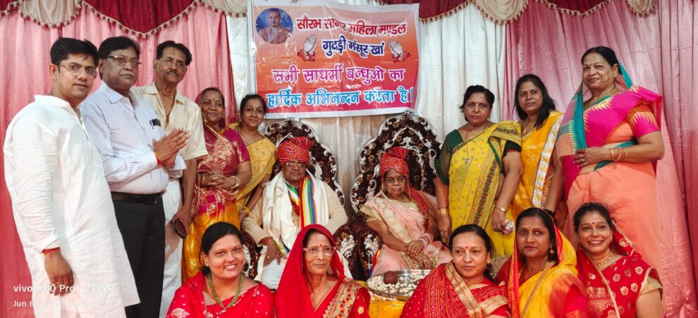 आगरा। 14 जून से 21 जून के मध्य हरीपर्वत स्थित एम डी जैन इंटर कॉलेज मैदान पर आगरा दिगंबर जैन परिषद के बैनर तले पीर कल्यानी नसियां जी स्थित श्री नेमिनाथ दिगम्बर जैन मंदिर का भव्य श्री मज्जिनेन्द्र पंचकल्याणक मानस्तम्भ प्रतिष्ठा एवं महामस्तकाभिषेक महोत्सव आयोजित होने जा रहा है। इसमें गुदड़ी मंसूर खां मन्दिर कमेटी आगरा के तत्वावधान में पंचकल्याणक मानस्तम्भ प्रतिष्ठा एवं महामस्तकाभिषेक महोत्सव के अंतर्गत प्रभु आदिनाथ के पिता राजा नाभिराज एवं माता मरूदेवी एवं बाल ब्रह्मचारी नवीन भैय्या जी की भव्य गोदभराई कार्यक्रम का आयोजन किया गया। यह आयोजन आगरा के पत्तल गली स्थित गुदड़ी मंसूर खां के श्री शीतलनाथ दिगम्बर जैन मन्दिर सेठ बिहारी लाल धर्मशाला में बडे़ ही हर्षोल्लास के साथ किया गया।