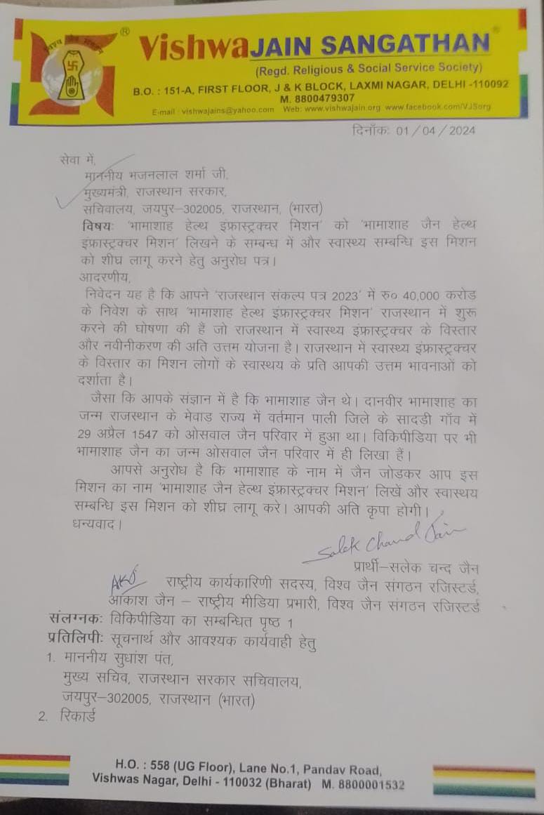 राजस्थान राज्य में जैन मुनियों की सुरक्षा, जैन तीर्थों की सुरक्षा संरक्षण और संवर्धन हेतु राजस्थान राज्य श्रमण संस्कृति बोर्ड में अध्यक्ष एवं सदस्यों का मनोनयन अति आवश्यक है। मयंक जैन, अध्यक्ष विश्व जैन संगठन इंदौर ने कहा कि राजस्थान राज्य श्रमण संस्कृति बोर्ड में अध्यक्ष व सदस्यों का मनोनयन शीघ्र अतिशीघ्र किया जाए।