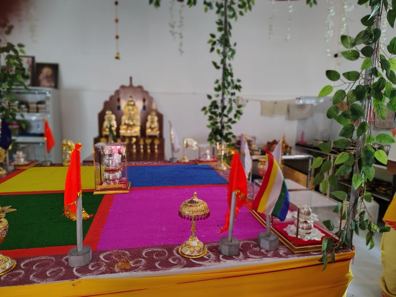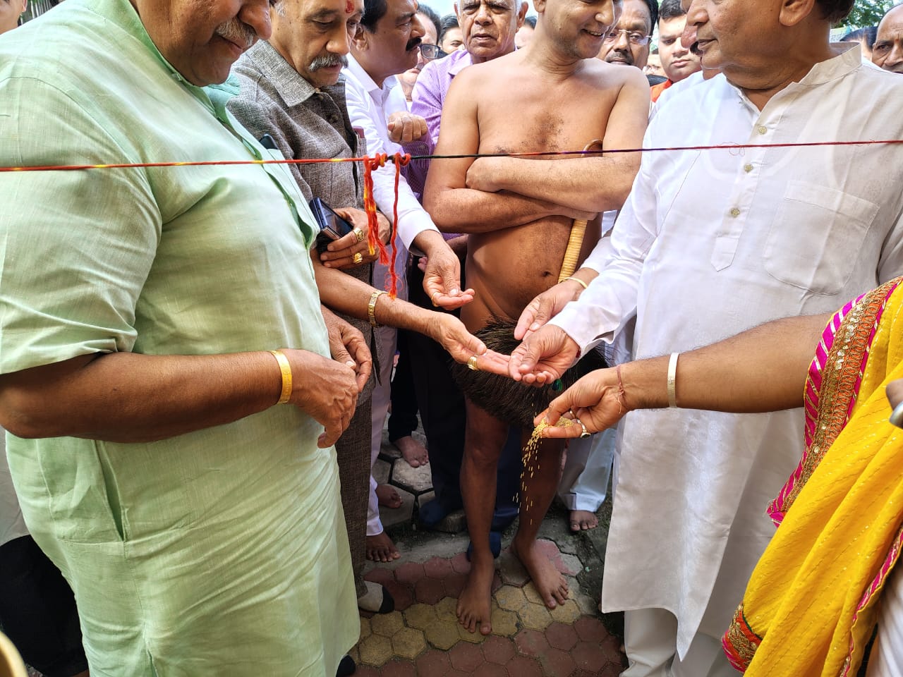 इसके बाद मंडप उद्घाटन पूज्य वर्षा योग धर्म प्रभावना समिति के अध्यक्ष नरेंद्र वेद और कुशल राज जैन पमपम भैया द्वारा किया गया। ध्वज स्थापना आर. के. मैना जैन रानेका द्वारा की गई।