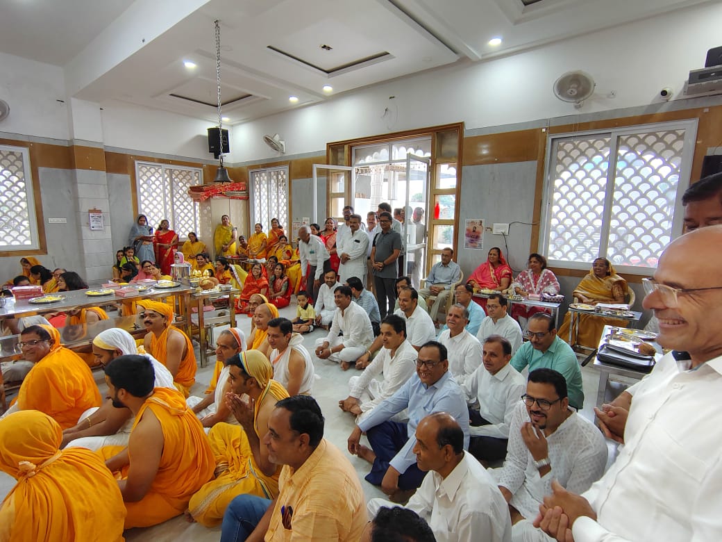 इसी क्रम में जिनेंद्र भगवान का प्रथम अभिषेक नरेंद्र वेद द्वारा व शांति धारा प्रकाशनचंद बड़जात्या द्वारा की गई। मंगलाचरण उमंग बड़जात्या व कनिका पहाड़िया ने प्रस्तुत किया।