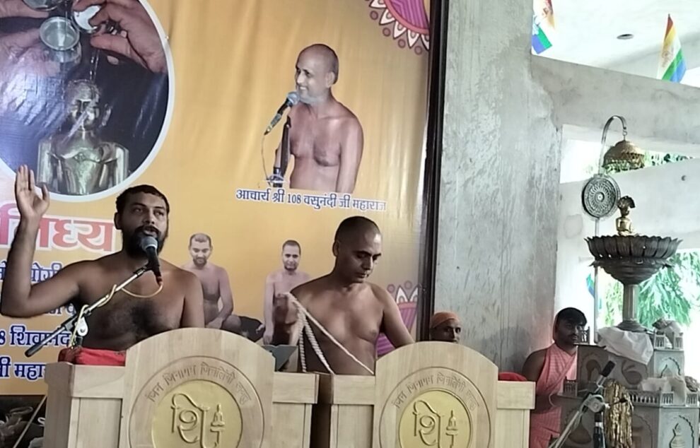 ये उद्गार पूज्य मुनिराज श्री शिवानंद जी महाराज ने श्री महावीर दिगंबर जैन नसियां जी मंदिर में णमोकार महामंत्र अनुष्ठान के अवसर पर धर्मसभा को संबोधित करते हुए व्यक्त किए। स्याद्वाद युवा क्लब मुरैना द्वारा युगल मुनिराज श्री शिवानंद जी और मुनिश्री प्रश्मानंद जी महाराज के पावन सान्निध्य में महामंत्र णमोकार का 24 घंटे का अखंड पाठ आयोजित किया गया। पाठ के समापन पर प्रतिष्ठाचार्य राजेंद्र जैन शास्त्री आचार्यत्व में विधान और हवन आदि अनुष्ठान किए गए। अनुष्ठान के पश्चात श्री जिनेंद्र प्रभु की भव्य शोभायात्रा निकाली गई।