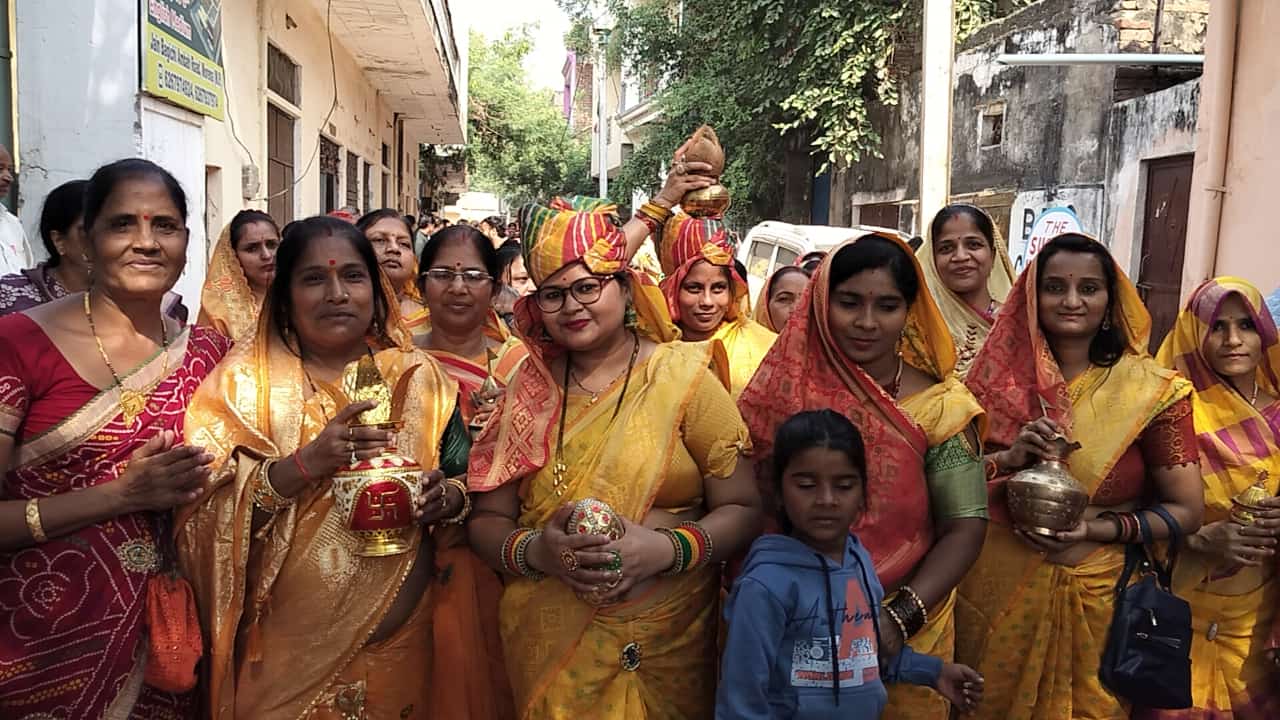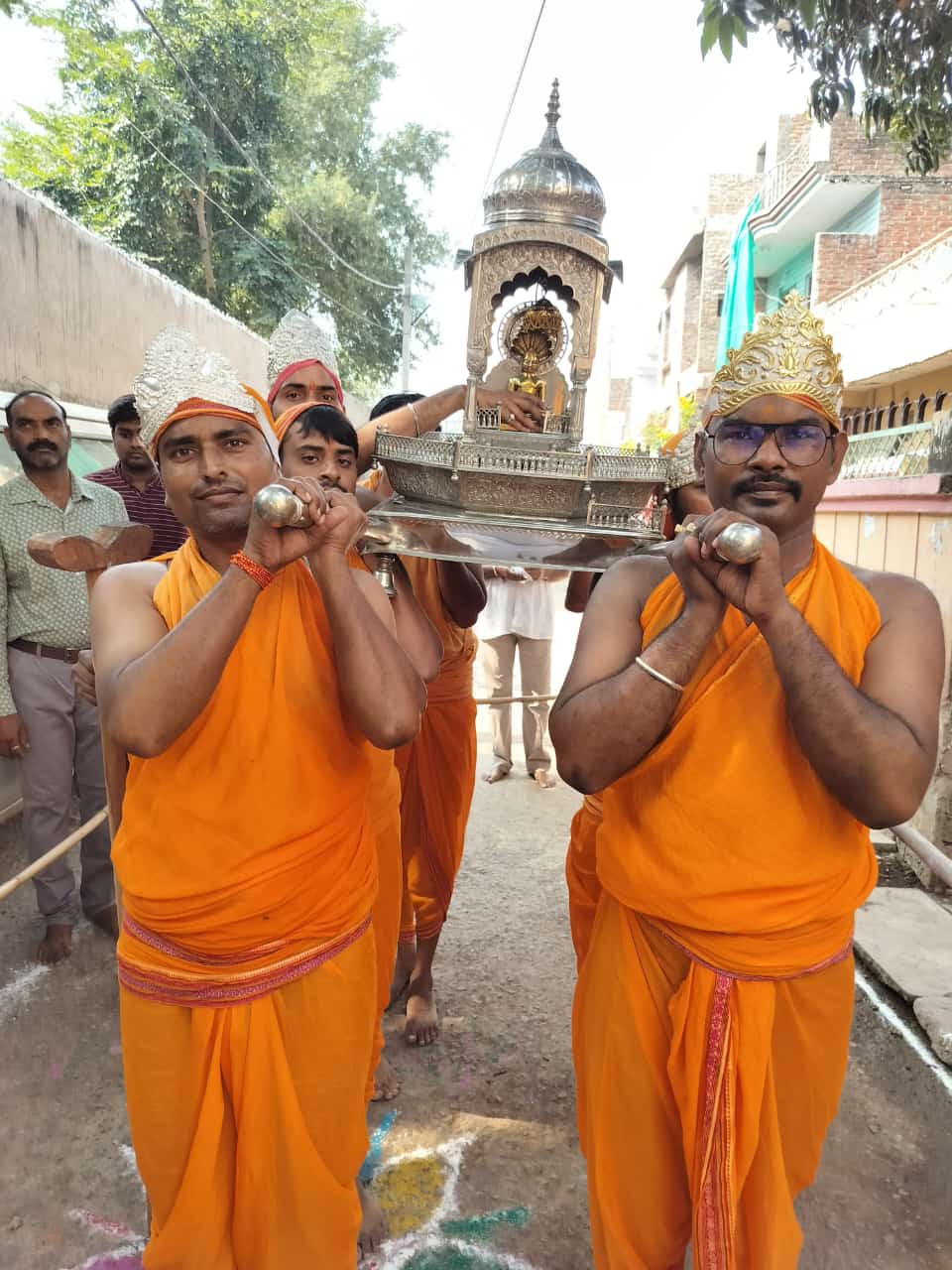 हार, मुकुट और विशेष परिधान से सुज्जित इंद्र द्वारा जिनेंद्र प्रभु की प्रतिमा को पालकी में विराजमान किया गया। सौभाग्यवती महिलाएं सिर पर मंगल कलश धारण किए हुए थीं। महिलाएं और पुरुष मंगलगान करते हुए चल रहे थे, जबकि बालिकाएं डांडिया भक्तिनृत्य कर रहीं थीं। शोभायात्रा जैन बगीची, पुल तिराहा, अंबाह रोड पर भ्रमण करती हुई नसियां जी जैन मंदिर पहुंची, जहां प्रभुजी को पाण्डुक शिला पर विराजमान कर जलाभिषेक और शांतिधारा की गई। शोभायात्रा के दौरान सभी बंधुओं ने अपने-अपने दरवाजों पर रंगोली बनाकर और आरती उतारकर श्रीजी की अगवानी की। कार्यक्रम के पश्चात सभी के लिए अल्पाहार की व्यवस्था की गई थी।