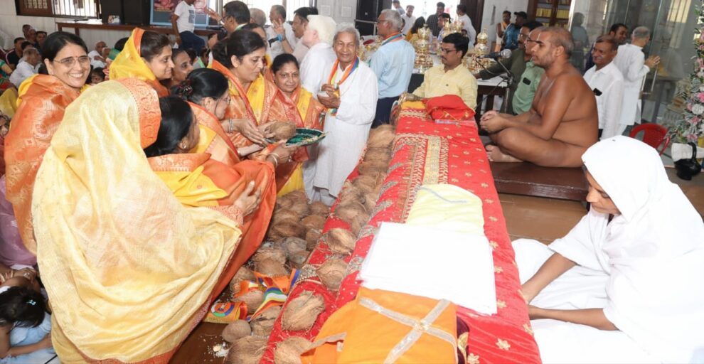 आगरा। मोतीलाल नेहरू रोड स्थित श्री नेमिनाथ दिगम्बर जैन मंदिर अतिशय क्षेत्र पीर कल्याणी नसियां जी पर मुनिश्री विदाम्बर सागर महाराज,आर्यिका निसर्गमति माता जी,आर्यिका विश्रेयश्री माताजी के अमृतमय मंगल चातुर्मास कलश स्थापना ब्रह्मचारी पंडित राकेश जैन शास्त्री के कुशल निर्देशन में संपन्न की गई। ध्वजारोहण आगरा दिगंबर जैन परिषद के अध्यक्ष जगदीश प्रसाद जैन, सुनील जैन ठेकेदर ने किया। मुख्य कलश स्थापना प्रदीप जैन पीएनसी परिवार ने की।