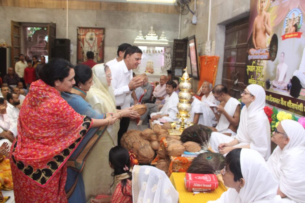 इंदौर। आचार्यश्री सुंदरसागर जी महाराज की शिष्या आर्यिका श्रीसुनयमति माताजी ससंघ की चातुर्मास साधना बीसपंथी मंदिर मल्हारगंज पर सम्पन्न हुई। इस अवसर पर सैकड़ों श्रद्धालुओं की उपस्थिति में आर्यिका संघ ने विधि विधान पूर्वक मंत्रोच्चार के साथ चातुर्मास कलश स्थापना करते हुए चतुर्विध दिशा का बंधन किया। मनमोहन झांझरी ने बताया कि प्रथम कलश का सौभाग्य मनोरमादेवी बसंत कुमार पांड्या, सुशील सुषमा पांड्या, राजेश अर्चना पांड्या परिवार को, द्वितीय कलश मैना अशोक पहाड़िया परिवार एवं विजय संगीता दोषी परिवार को प्राप्त हुआ। नौ मंगल कलश विभिन्न पुण्यार्जक परिवार ने प्राप्त किए। पाद प्रक्षालन धर्मेंद्र पाटनी परिवार को व शास्त्र भेंट करने का सौभाग्य भरत संगीता काला को प्राप्त हुआ। प्रारम्भ में सांस्कृतिक प्रस्तुति सोनाली जैन द्वारा की गई। दीप प्रज्वलन अध्यक्ष नरेश सेठी, कैलाश वेद व निर्मल कासलीवाल ने किया। कार्यक्रम का संचालन अर्पित जैन वाणी ने किया, अतिथि स्वागत अजय रावका, अजयपाल टोंग्या ने किया।