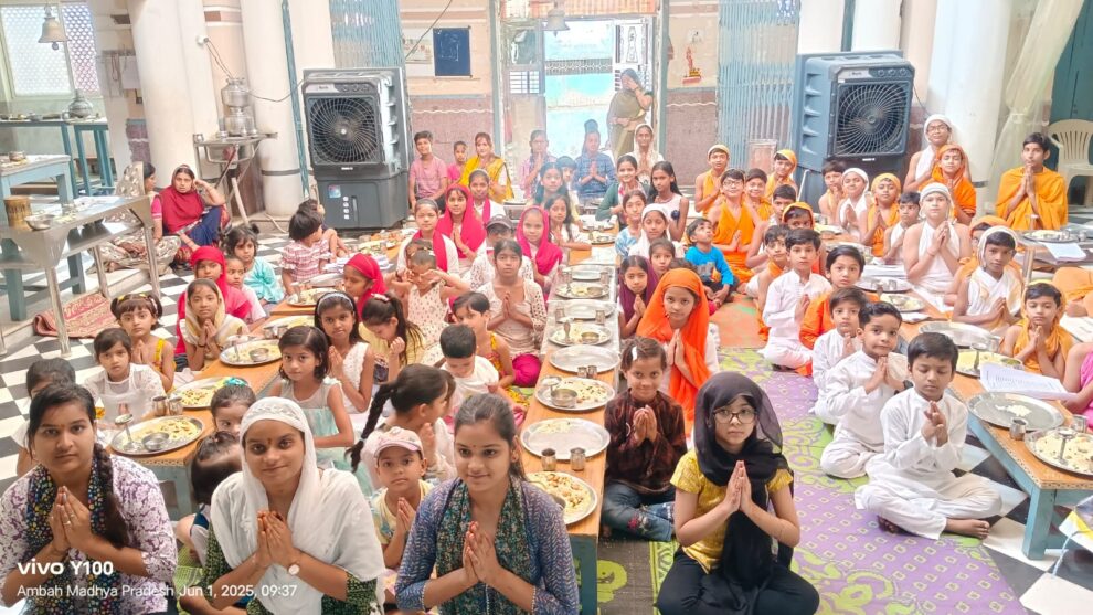 विनम्र एकेडमी पाठशाला में शांतिनाथ दिगम्बर जैन बड़े मंदिर में रविवार को जैन समाज के बच्चों ने पहुंचकर भगवान महावीर की विशेष पूजा-अर्चना की। बच्चों के लिए इस विशेष कार्यक्रम किया गया है। जिसमें 8 वर्ष से लेकर 16 वर्ष तक आयु वर्ग के बच्चे-बच्चियां सम्मलित हुए हैं। भगवान की प्रतिमा का पूजन करने की विधि बच्चों को बताई गई। अंबाह से पढ़िए, मनोज जैन नायक की यह खबर…