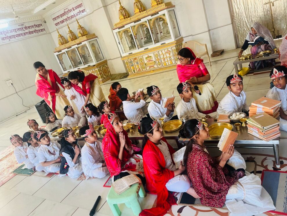 महावीर पाठशाला के बच्चों ने मनाया पदमप्रभु भगवान का मोक्ष कल्याणकः पदमप्रभु भगवान का पूजन कर निर्माण लाडू चढ़ाया