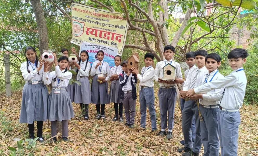 विद्यालय के बच्चों—परी सेन, कंचन, सुरभि पंथ, राधिका, वैष्णवी, अमन नामदेव, प्रिंस पाल, कार्तिक, शिव दुबे, सरस, विकास एवं अभिषेक—ने विद्यालय परिसर में स्थित “गौरैया वाटिका” में घोंसले लगाए और पक्षियों के लिए दाना-पानी रखने का संकल्प लिया।