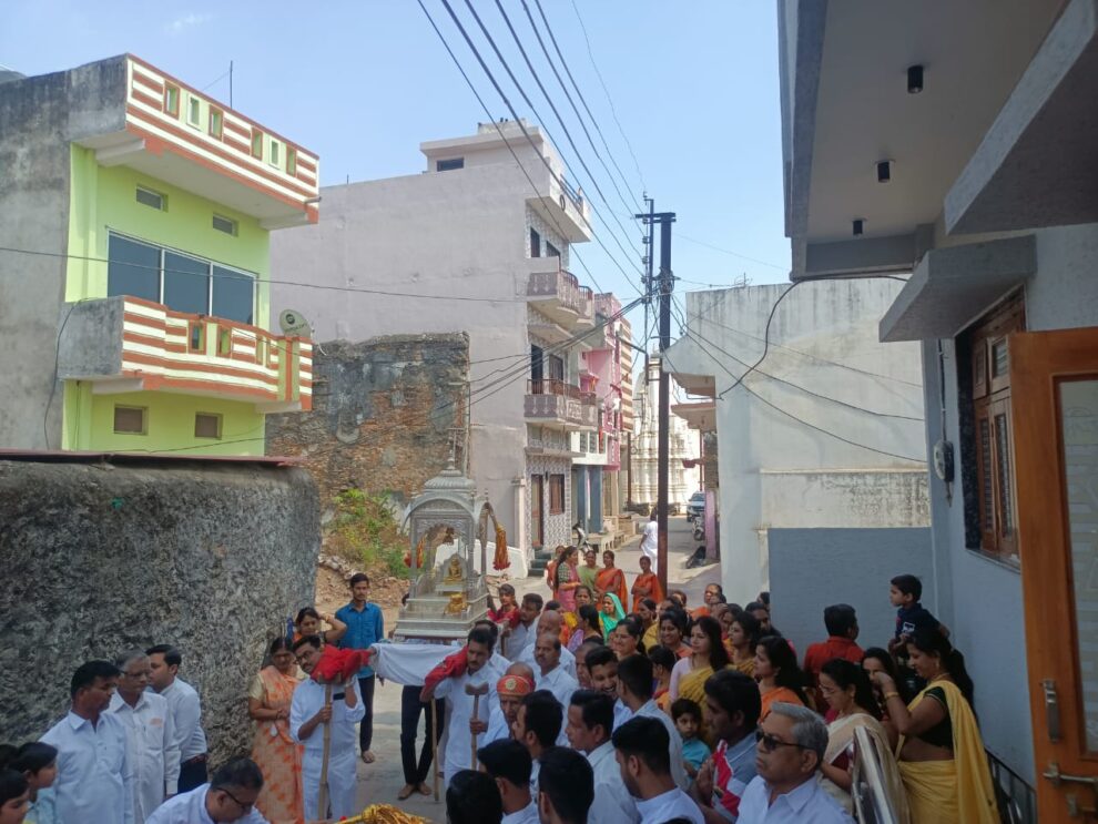 दोपहर में जुलूस हजारों की तादाद में शहर के मुख्य मार्गो से होकर मय गाजे बाजे गैर नृत्य करते हुए मन्दिर प्रांगण में पंहुचकर विसर्जित हुआ। सायंकालीन आरती, नाटक व जैन पाठशाला के 2023 का वार्षिक उत्सव मनाया गया। मयंक भैया व प्रकाश भैया ने कार्यक्रम का संचालन किया। यह जानकारी प्रकाश जैन ने दी।