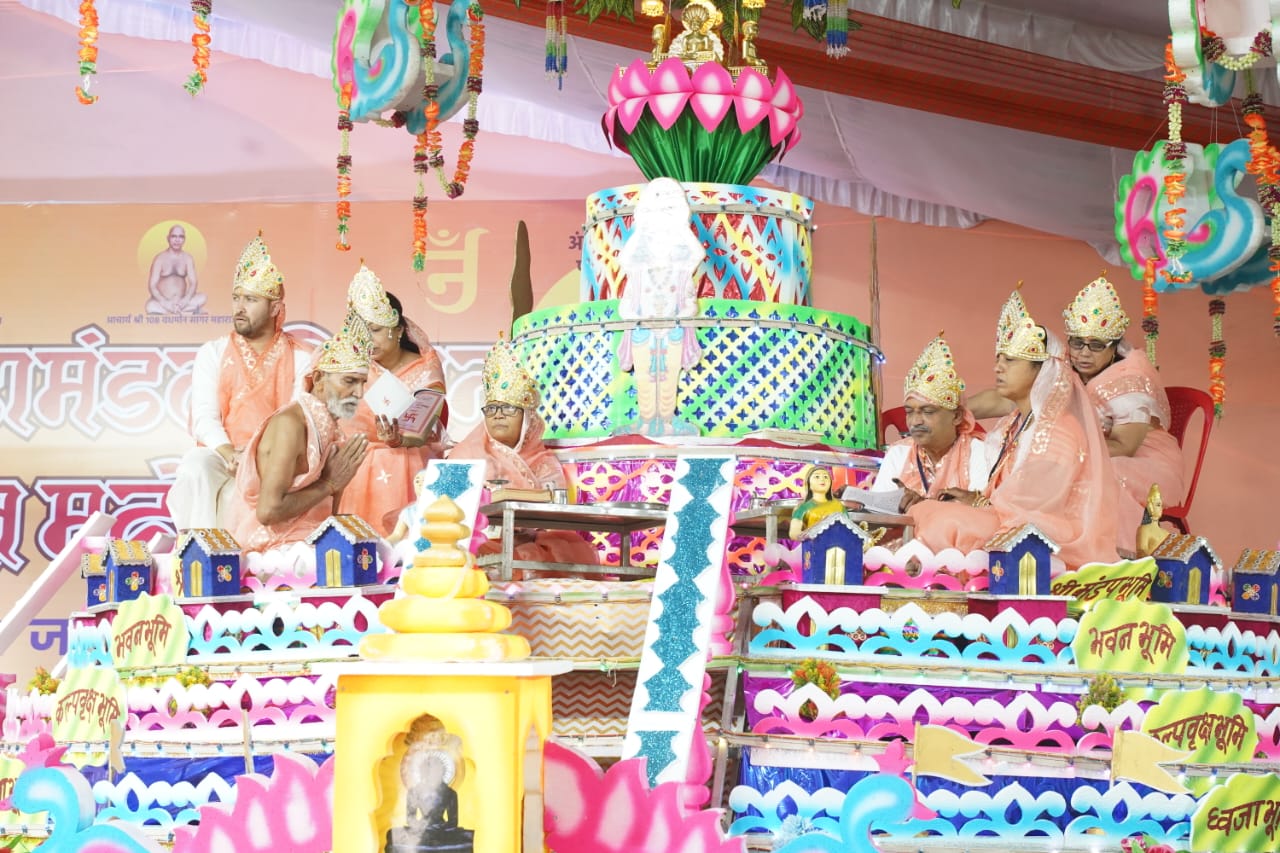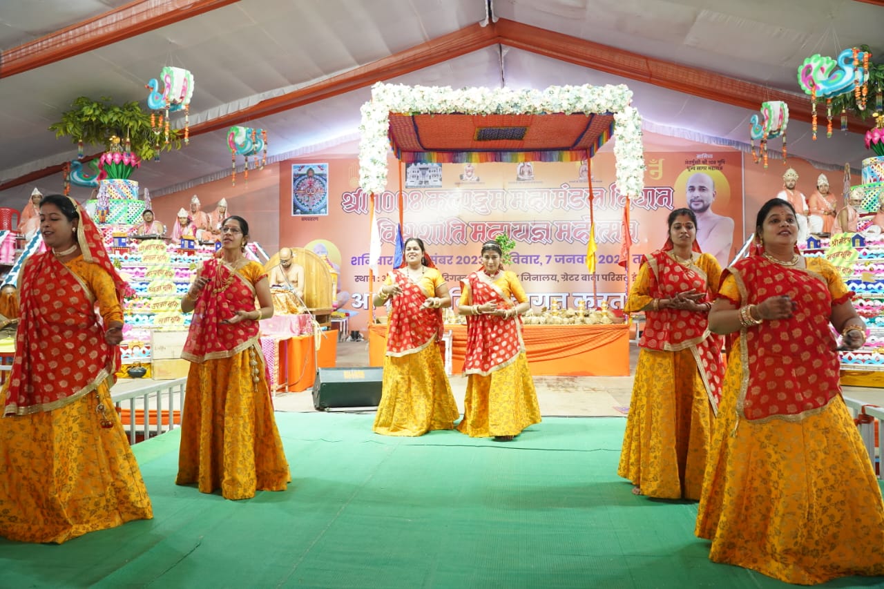 मंगलाचरण नैना कासलीवाल, प्राची छाबड़ा, पिंकी कासलीवाल, रुपाली अजमेरा, टीना जैन, अन्नू पाटनी ने संगीतमय मंत्रमुग्ध स्तवनों पर किया।
