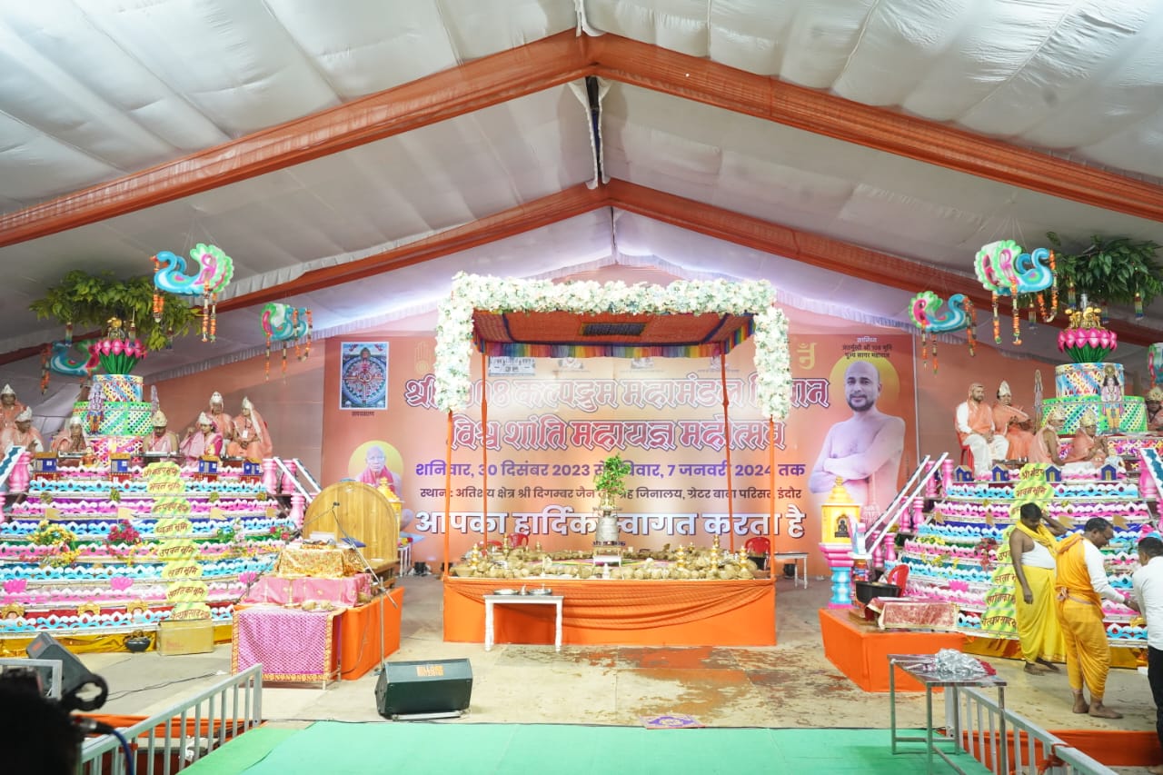 इसके पूर्व मालवा प्रांत की गुलाबी ठंडक में ऐतिहासिक, अकल्पनीय, मनमोहक साज सज्जा से सुशोभित आकर्षक पंडाल में वर्ष 2024 के प्रथम दिन के शुभ अवसर पर मुख्य शांतिधारा जयपुर निवासी कंवरीलाल- सुमित्रा जैन की ओर से की गई।