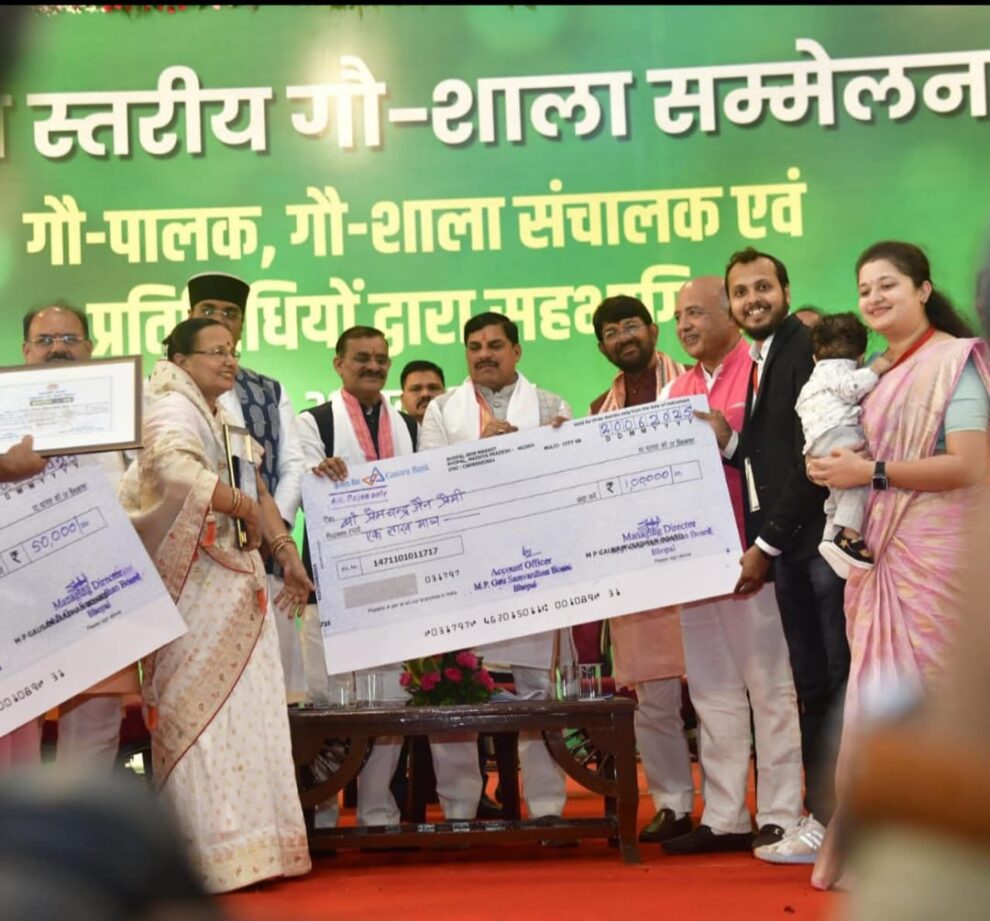 खजुराहो। भोपाल में प्रदेश सरकार की ओर से शुक्रवार को दयोदय महासंघ के राष्ट्रीय अध्यक्ष प्रेमचंद जैन ‘प्रेमी’ कटनी को मुख्यमंत्री डॉ. मोहन यादव ने गो सेवा के क्षेत्र में उत्कृष्ट कार्यों के लिए सम्मानित किया। इस गरिमामय कार्यक्रम में पशुपालन मंत्री लखन पटेल एवं सहकारिता मंत्री विश्वास सारंग भी उपस्थित थे। साथ ही अनेक प्रशासनिक अधिकारी भी मौजूद रहे। गौरतलब है कि सरकार यह पुरस्कार प्रतिवर्ष गो सेवा के क्षेत्र में उत्कृष्ट कार्याे के लिए प्रदान करती है। इस वर्ष का आचार्य विद्यासागर जीव दया सम्मान की व्यक्तिगत श्रेणी में प्रथम पुरस्कार के रूप में गो सेवक प्रेमचंद ‘प्रेमी’ को एक लाख रुपए की राशि का चेक जन समूह के बीच मुख्यमंत्री डॉ. यादव ने प्रदान किया।