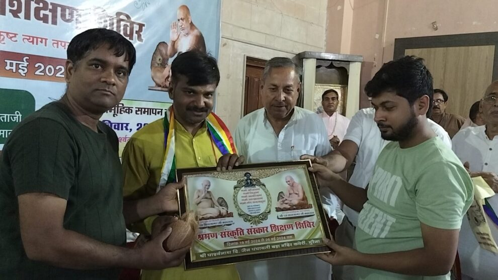 इस अवसर पर शिविर में बाहर से शिक्षण प्रदान करने आए हुए विद्वान बा.ब्र. संजय भैया, अनीता दीदी, ललिता दीदी, नीरज शास्त्री भगवा, सुरेश शास्त्री भगवा, शुभम शास्त्री शाहगढ़, राहुल शास्त्री बागरोही, शुभम शास्त्री हटा, नवनीत शास्त्री मुरैना, हिमांशु शास्त्री, नीतू जैन एवं पूर्वी जैन को सम्मानित किया गया।शिविर के अंतिम दिन सभी 400 शिवरार्थियोँ की प्रत्येक विषयों की परीक्षाएं ली गई ।