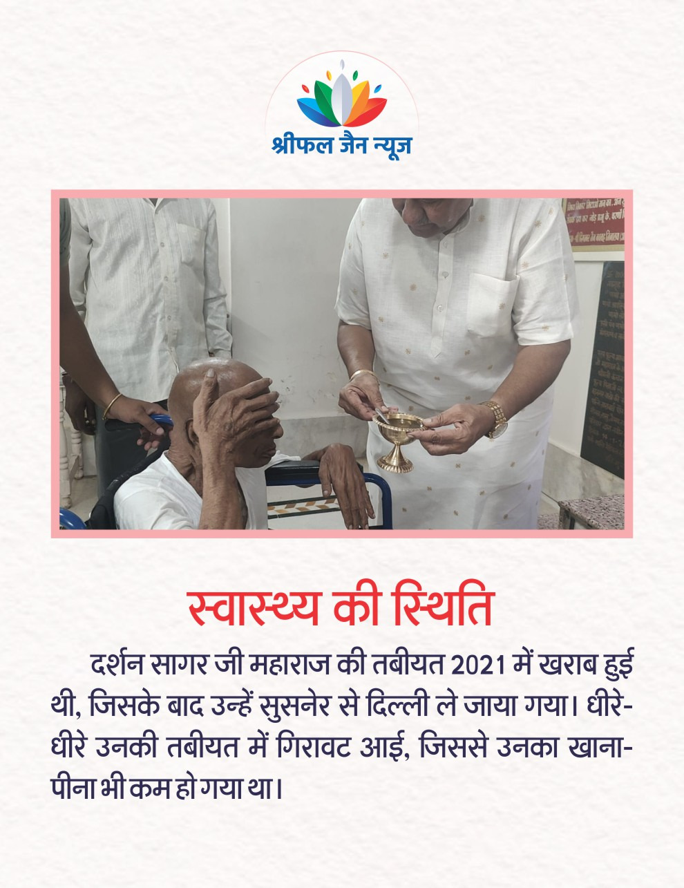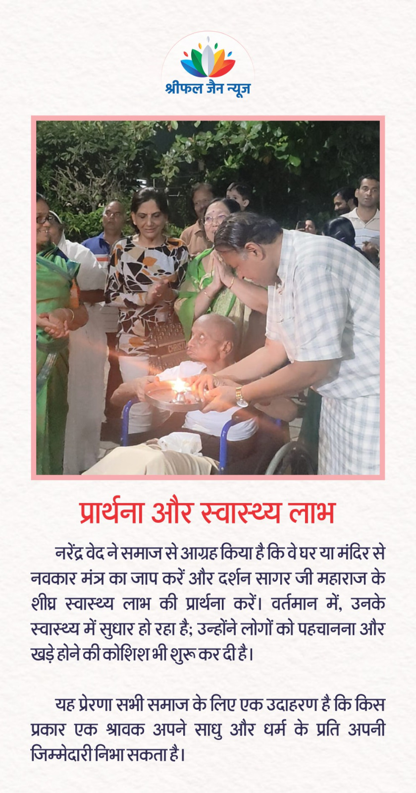 दर्शन सागर महाराज के स्वास्थ्य में सुधार हुआ; इस कार्य से समाज ही नहीं अपितु हर व्यक्ति को प्रेरणा लेनी चाहिए