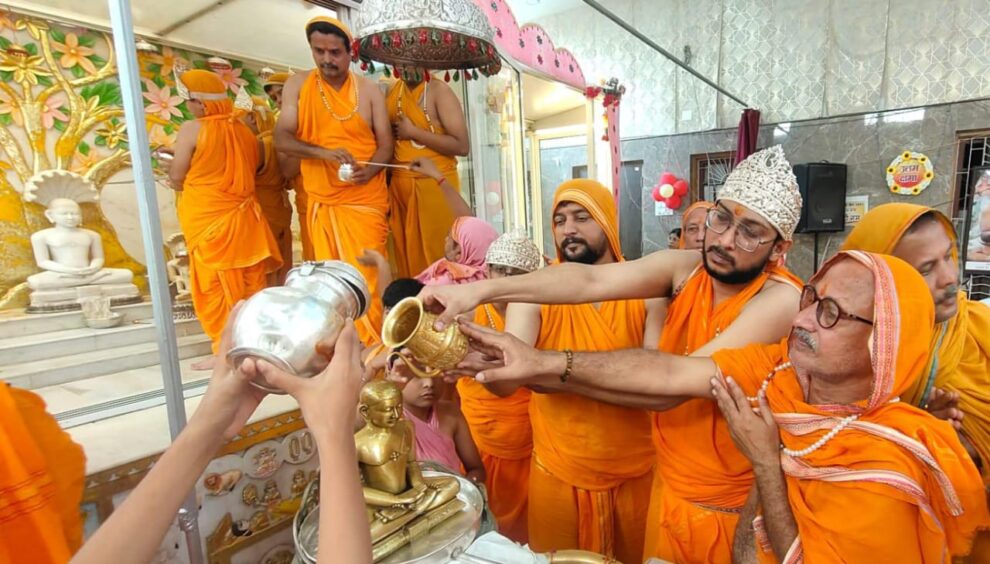 नीचे वेदी पर 1008 आदिनाथ भगवान की प्रतिमा का प्रथम अभिषेक एवं शांतिधारा ललित-सौरभ जैन पापड़ीवाल परिवार को मिला। समाज के सह मंत्री राज जैन छाबड़ा, कोषाध्यक्ष सुरेंद्र जैन काला, सुबोध-आशा जैन गंगवाल, ललित-नीलम जैन सेठी, सुशील जैन छाबड़ा व पार्षद पिंकी जैन ने सभी व्रतधारियों की अनुमोदना की। प्रेम झांझरी (सोलह कारण व्रतधारी), अंकित जैन थोल्या एवं नेहा जैन झांझरी (दसलक्षण व्रतधारी) की भी विशेष अनुमोदना की गई।