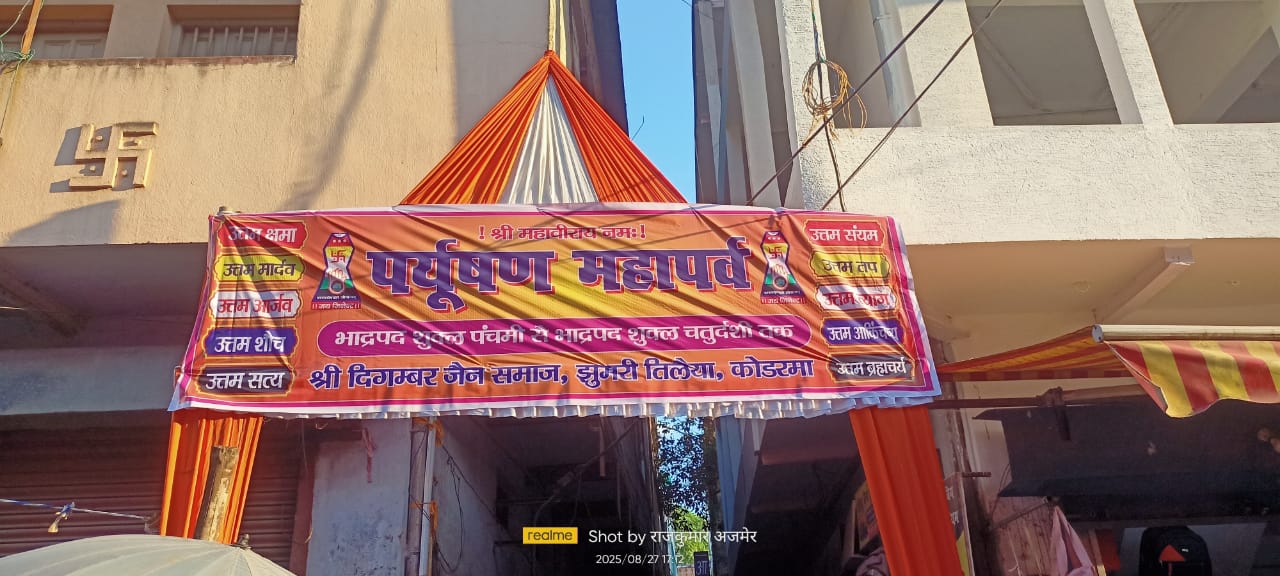 झुमरी तिलैया में दसलक्षण महापर्व का शुभारंभ, जैन समाज में उमंग और श्रद्धा : तप, त्याग और संयम का महापर्व 28 अगस्त से प्रारम्भ, मुनि प्रणम्य सागर जी के आशीर्वाद से आयोजन