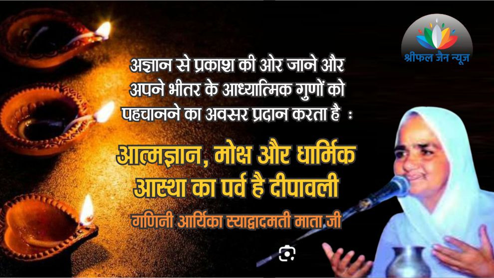 भगवान महावीर के निर्वाण दिवस पर श्रीफल जैन न्यूज की विशेष प्रस्तुति 5 : आत्मज्ञान, मोक्ष और धार्मिक आस्था का पर्व है दीपावली- गणिनी आर्यिका स्याद्वादमती माता जी