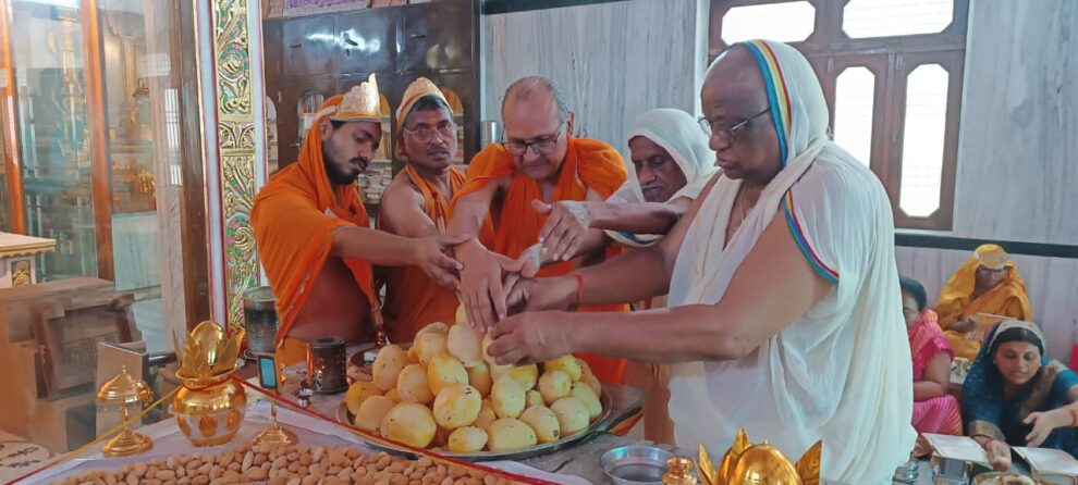 आगरा। मेडिटेशन गुरु उपाध्याय श्री विहसंत सागर जी महाराज के मंगल आशीर्वाद से सोलह दिवसीय श्री शांतिनाथ महामण्डल विधान का आयोजन हो रहा है। कलाकुंज मन्दिर समिति के तत्वावधान में 6 जुलाई से आयोजित यह विधान आगरा के मारूति स्टेट स्थित कलाकुंज के श्री महावीर दिगम्बर जैन मंदिर में किया जा रहा है। जिसमें पंडित शुभम-जैन शास्त्री के कुशल निर्देशन में विधान के 14वें दिन 19 जुलाई को भक्तजनों ने अष्ट द्रव्यों के साथ प्रभु की आराधना करते हुए माण्डले पर अर्घ्य अर्पित कर श्री शांतिनाथ विधान की मांगलिक क्रियाएं पूर्ण कीं।