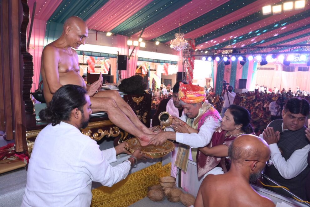 शामली। नगर में शनिवार को इतिहास रचा गया। 15 नवम्बर का दिन शामली के इतिहास में स्वर्णाक्षरों में अंकित किया जाएगा। भारतीय वसुंधरा के सम्पूर्ण गुरु भक्तों ने धर्मनगरी शामली में उपस्थित होकर अपने आचार्य श्री विमर्शसागर जी का 53 वां “विमर्श उत्सव” जन्म जयन्ती महोत्सव गुरुवर की चरण आराधना करके मनाया। इस स्वर्णिम अवसर के साथ ही मणि-कांचन संयोग की भांति विगत वर्ष दीक्षित आर्यिका श्री विमर्शिता श्री माताजी सहित 13 संयमियों का प्रथम दीक्षा दिवस भी सभी गुरु भक्तों ने मनाया। आचार्य श्री विमर्शसागर जी का जन्मोत्सव सभी शिष्य समुदाय के साथ सम्पूर्ण जिनागम पंथी गुरुभक्तों ने एक अनूठे अंदाज में मनाया। जिसे शुभकामनाएँ महोत्सव के रूप में शनिवार को “शुभकामनाएँ “भारत” में देखा।