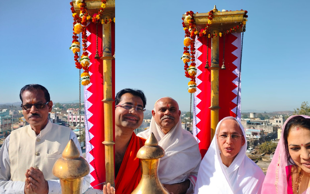 ऐसे में रविवार को प्रातः मंदिरजी में अंतर्मुखी दिगम्बर जैन मुनि 108 श्री पूज्य सागर जी महाराज एवं जिनवाणी सेवा चंद्रिका 105 श्री प्रसन्नमति माताजी के संघ सान्निध्य में जलाभिषेक, पंचामृत अभिषेक, नित्य नियम पूजा के साथ जिन सहस्रनाम के 1008 अध्र्य चढाए गए। नवीन ध्वजा का विधिवत पूजन कर मंत्रोच्चारपूर्वक धरियावद नगर गौरव समाधिस्थ दिगम्बर जैन मुनि 108 श्री श्रेयस सागरजी महाराज, समाधिस्थ आर्यिक 105 श्री श्रेयमति माताजी के गृहस्थ पुत्र, पुत्रवधु, पौत्र, परिवार के सुनील कुमार-लतादेवी, सुभग- युगल भोपावत परिवार ने मंदिर पर ध्वजा चढाने का पुण्यलाभ प्राप्त किया।