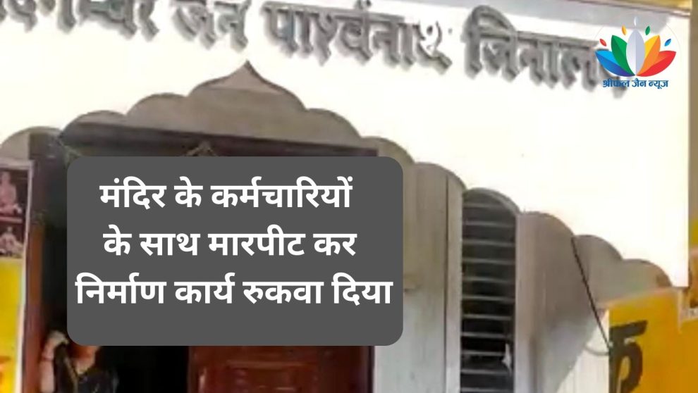 इंदौर. राजेश जैन दद्दू। एरोड्रम थाना क्षेत्र में विद्या पैलेस दिगम्बर जैन मंदिर के निर्माण के दौरान क्षेत्र के अन्य समाज के लोगों ने मंदिर के कर्मचारियों के साथ मारपीट कर निर्माण कार्य रुकवा दिया। स्थानीय लोगों ने 1008 दिगम्बर जैन पार्श्वनाथ जिनालय मंदिर में तोड़फोड़ की। मंदिर के कांच भी तोड़े और मंदिर के कर्मचारियों के साथ मारपीट की। इस घटना का युवा महासभा प्रवक्ता राजेश जैन दद्दू ने कड़ा विरोध किया और पुलिस को सूचना दी। इसके बाद मौके पर पहुंची पुलिस ने मामला संभाला।
