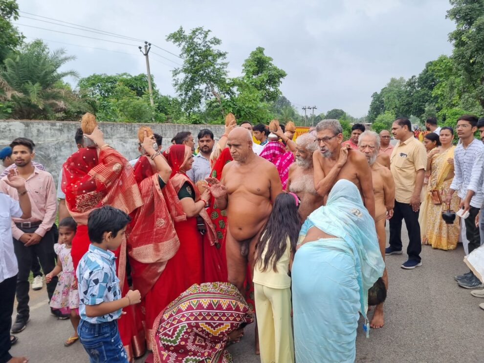 धरियावद। दिगंबर जैन 108 मुनि पुण्य सागर महाराज ससंघ का शनिवार को खून्ता (श्रीनगर) में भव्य मंगल प्रवेश हुआ। सुबह 6 बजे मूंगाणा से संघ ने बड़ी संख्या में श्रद्धालुओं के साथ पैदल विहार किया। इसके बाद सुबह 8.30 बजे खूंता गांव में मुनि पुण्य सागर का 17 अन्य साधु-संतों के साथ मंगल प्रवेश हुआ। ग्रामवासियों ने संघ की गाजे-बाजे के साथ भक्ति से झूमते हुए संघ की अगुवानी की। इस दौरान श्रद्धालुओं ने जगह-जगह मुनि श्री का पाद प्रक्षालन किया