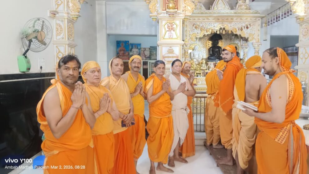 अंबाह। दिगंबर जैन सोशल ग्रुप द्वारा स्थानीय श्री पार्श्वनाथ दिगंबर जैन मंदिर (परेड) में सामूहिक पूजन एवं अभिषेक का भव्य एवं आध्यात्मिक आयोजन किया गया। प्रातःकाल आयोजित इस धार्मिक कार्यक्रम में समाज के महिला-पुरुषों, युवाओं एवं वरिष्ठजनों ने उत्साहपूर्वक भाग लेकर धर्मलाभ अर्जित किया। पूरे मंदिर परिसर में भक्ति, श्रद्धा और अनुशासन का सुंदर संगम देखने को मिला। मंत्रोच्चारण, घंटानाद और भक्तिमय वातावरण ने सभी को आध्यात्मिक अनुभूति कराई।