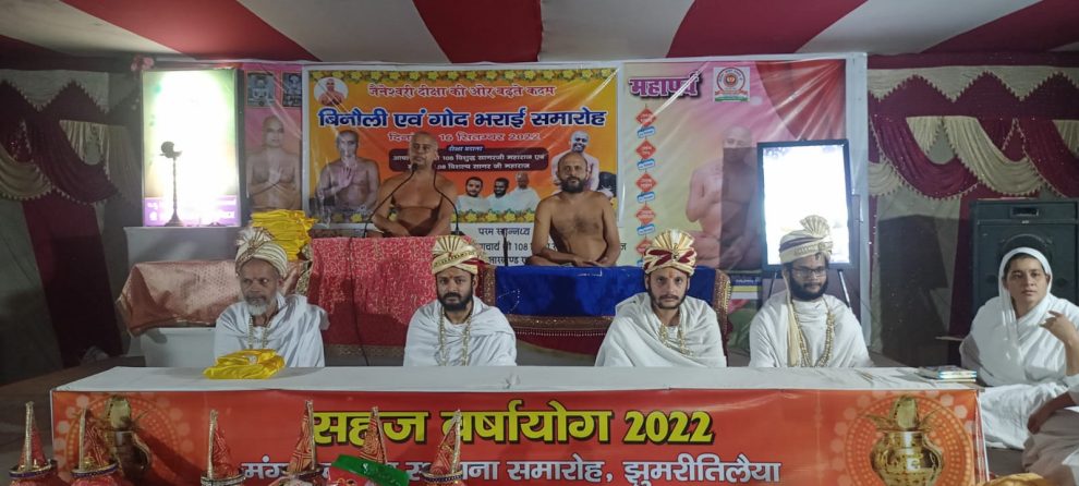 जैनेश्वरी दीक्षा ग्रहण करने के पूर्व चार दीक्षार्थी ब्रह्मचारी भाई के लिए बिनौली, गोद भराई