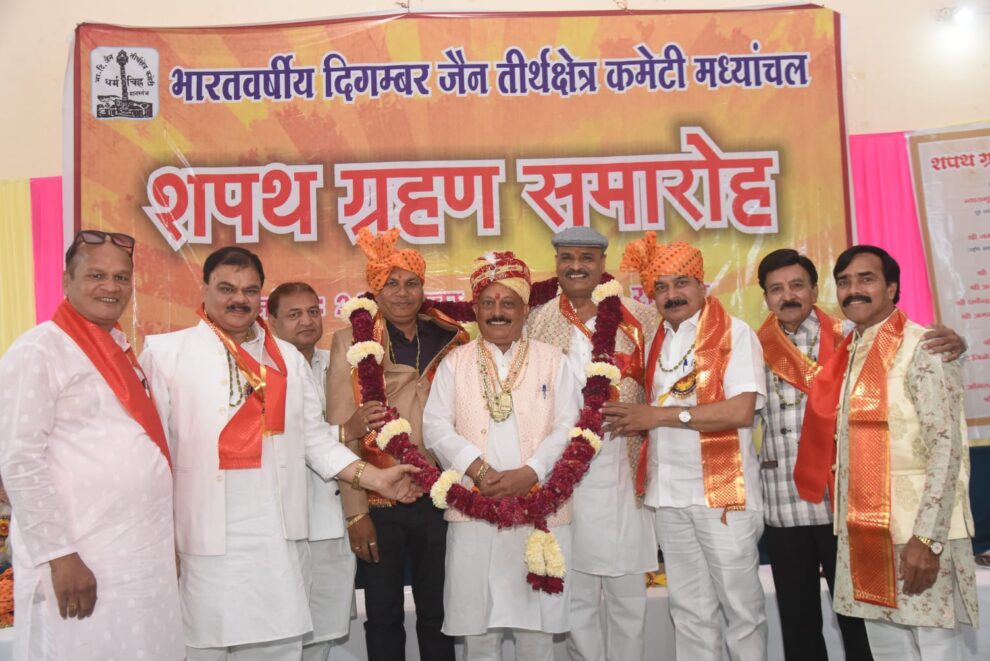 इस समारोह की मुख्य अतिथि न्यायमूर्ति विमला जैन ने भारत वर्षीय दिगंबर जैन तीर्थक्षेत्र कमेटी मध्यांचल के पंचवर्षीय (2024-28) के लिए निर्विरोध नवनिर्वाचित अध्यक्ष तथा कार्याध्यक्ष, मनोनीत संरक्षक, सलाहकार, परामर्शदाता, महामंत्री, कोषाध्यक्ष, उपाध्यक्ष, चेयरमेन, मंत्री, प्रचार प्रमुख, प्रवक्ता सहित 50 से अधिक पदाधिकारियों को मध्यांचल अंतर्गत तीर्थ क्षेत्र की धरोहर के हित, संरक्षण, संवर्धन, जीर्णाेद्धार, सुरक्षा, विकास के लिए समर्पित रहने तथा कमेटी के संविधान और दायित्वों के निर्वहन करने की शपथ दिलाई। जिसमें नवनिर्वाचित अध्यक्ष डीके जैन को शपथ ग्रहण का आकर्षण अनूठा रहा। जिसमें संगीत की ध्वनि पर मध्यांचल के पदाधिकारी और तीर्थ क्षेत्र के प्रतिनिधियों ने मंच पर ससम्मान ले जाकर शपथ ग्रहण कराई।