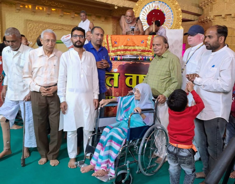 ललितपुर. राजीव सिंघई । अखिल भारतीय संस्था तरुण मित्र परिषद द्वारा मंगलवार को दिव्यांगों को कृत्रिम पांव और वयोवृद्ध महिला को व्हील चेयर उपलब्ध कराई गई। परिषद के महासचिव अशोक जैन ने बताया कि क्षेत्रपाल मंदिर में निर्यापक श्रमण मुनिपुंगव श्री सुधा सागर जी महाराज के सानिध्य में मंगल प्रवचन के अवसर पर ऐसे आठ दिव्गयांजन, जिनके पांव कटे हुए हैं, को कृत्रिम पांव और एक वयोवृद्ध महिला को व्हील चेयर उपलब्ध कराई गई।