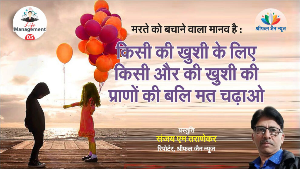 जब जीवन में उल्लास हो, आनन्द हो, अपने काम से प्रसन्नता हो, उन्नति की ललक हो, सबसे प्रेम हो, पड़ोसी इंसान दिखता हो, हर मजहब में सिर नजर आता हो, ईश्वर, अल्लाह, जिन, बुद्ध सबका रूप एक लगे तो समझना तुम जी रहे हो और किसी का दिल न दुःख जाए इतना कोमल हृदय होते समझना तुम सभी को जीने की राह पर चला रहे हो। किसी भी देवता के नाम पर, किसी भी गुरु की खुशामद में, किसी भी खुशी या बधाई में किसी भी प्राणी का जीवन बर्बाद मत करो। किसी की खुशी के लिए किसी और की खुशी की प्राणों की बलि मत चढ़ाओ। ओ मानव ! जीते हुए को मारने वाला दानव है, राक्षस है और मरते को बचाने वाला मानव है, देवता है। रक्षण करने वाला महावीर है, हनुमान है, दयावान है और भक्षण/शोषण करने वाला रावण है, हैवान है।