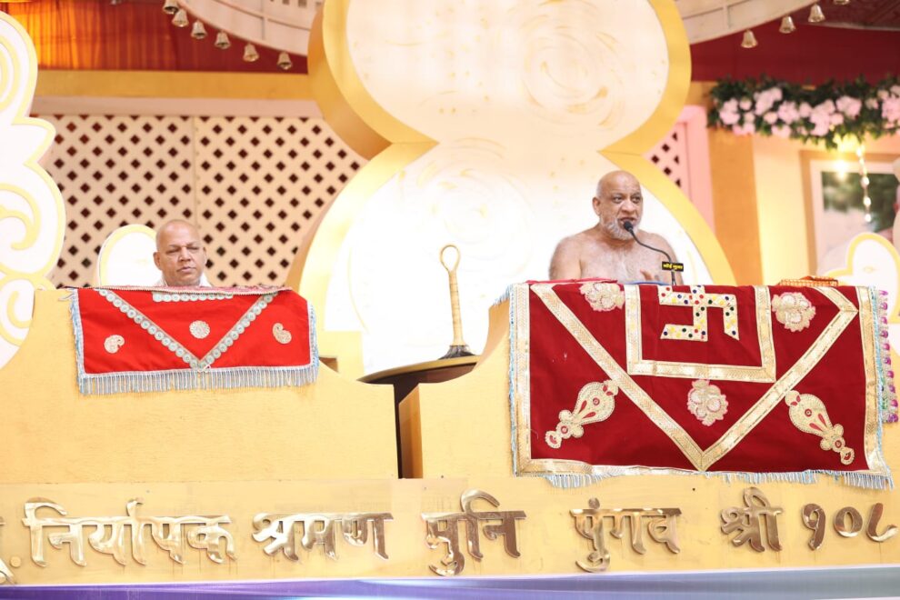 इस अवसर पर मुनिपुगंव श्री सुधासागर महाराज ने अपने मंगल प्रवचन में कहा कि जिनेंद्र देव यह नहीं कहते हैं कि मैंने जान लिया तुम्हें कोई जरूरत नहीं। जिनेंद्र देव कहते हैं, मैंने जो जाना है उसे तुम भी जानो जिससे तुम यह न कह सको कि जिनेंद्र देव के जाने हुए ज्ञान से हमारी जिंदगी चल रही है। तुम खुद जानो कि जिनेंद्र देव क्या जानते है। तुम खुद समझो कि जिनेंद्र देव ने जो कहा है वो कितना सत्य है और उस सत्यता को जब आत्मा से निकलने लगे जाता है, तब यह भगवान की जिनवाणी हमारे आत्मा का श्रुतज्ञान बन जाता है। कुन्दकुन्द भगवान ने शब्द दिए हैं ज्ञान नहीं दिया, जिनेंद्र भगवान शब्द दे सकते है ज्ञान नहीं क्योंकि ज्ञान का आत्मा के साथ समवाह सम्बंध है, तादात्म्य सम्बन्ध है। भगवान का जो ज्ञान है वो उनके पास रहेगा, हमारे पास नहीं आ सकता। जब ज्ञान दे ही नहीं सकते तो भगवान ने हमें ज्ञान नहीं दिया, शब्द दिए और शब्दों में ऐसा अर्थ निहित कर दिया कि उस अर्थ को हमें पकड़कर हमारी ज्ञान की पर्याय बन जाये। जो शब्द हमने सुने हैं, वो तो द्रव्य श्रुत हैं, उपचार से ज्ञान है। जो शब्द हमारे कानों में पड़े हैं वो शब्द हमारे श्रुतज्ञान को उत्पन्न होने में निमित्त बने और वो ज्ञान हमारा जो जाए। जिनगुण सम्पत्ति होऊ मज्झम जिनेंद्र भगवान का ज्ञान हमारा ज्ञान बने इसके लिए श्रमण संस्कृति ही समर्थ है। विश्व में ऐसा कोई भी दर्शन नहीं है जो भगवान के समान बने का अधिकार देता है और श्रमण संस्कृति का मुख्य उद्देश्य यही है कि भगवान जो जान रहे हैं, उससे ही नहीं मानना ये श्रमण संस्कृति नहीं है, ये तो भगवान संस्कृति है, ये तो श्रद्धा की संस्कृति है। श्रमण संस्कृति का अर्थ है जो भगवान जानते हैं उसे मैं भी जानूंगा, इसका नाम है श्रमण संस्कृति। भगवान हमारे मालिक नहीं है, भगवान हमारे सीनियर हैं और हम उनके जूनियर हैं, वो हमसे एक कदम आगे चले हैं, हम उनके कदमों पर चल रहे हैं लेकिन चल हम भी रहे हैं। आप आजीविका के लिए ज्ञान न करें धर्म का, जीवन के लिए करें, आजीविका की गारन्टी मेरी है, जिनवाणी मां की है, जिनेंद्र देव की है। जीवन यदि तुम्हारा लक्ष्य है तो आप कभी भी किताब पढ़ने के बाद भूलेंगे नहीं, शास्त्र पढ़ने के बाद वो तुम्हारी जिंदगी में रहेगा। यदि जीवन के लिए पढ़ा है तो जिंदगी भर आपका स्वाध्याय होना चाहिए।