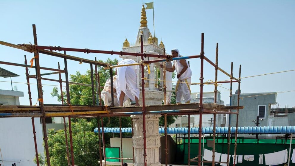 इंदौर। मनुष्य पर्याय मिली, देव, शास्त्र, गुरु, का सानिध्य मिला उसे व्यर्थ मत गंवाओ। मनुष्य जन्म को सार्थक करने के लिए प्रतिदिन भगवान के श्री चरणों में श्रद्धा, विवेक और संकल्प के साथ उत्तम से उत्तम वस्तु,(द्रव्य सामग्री एवं श्रीफल) समर्पित कर दर्शन कर पुण्य अर्जन करें। जो श्रावक इस विधि से देव दर्शन अभिषेक पूजन करते हैं उनके पापों का क्षय होता है और उनके पुण्य और वैभव में वृद्धि होती है। यह उद्गार आज दिगंबर जैन आदिनाथ जिनालय छत्रपति नगर में आयोजित मान स्तंभ महा मस्तकाभिषेक के पूर्व मुनि श्री विमल सागर जी महाराज ने व्यक्त किए। मुनिश्री अनंतसागर जी महाराज भी उपस्थित थे। इस अवसर पर 45 फीट ऊंचे मान स्तंभ के तीन खंड में विराजित चतुर्मुखी प्रतिमाओं का स्वर्ण रजत कलशों से अभिषेक हुआ।