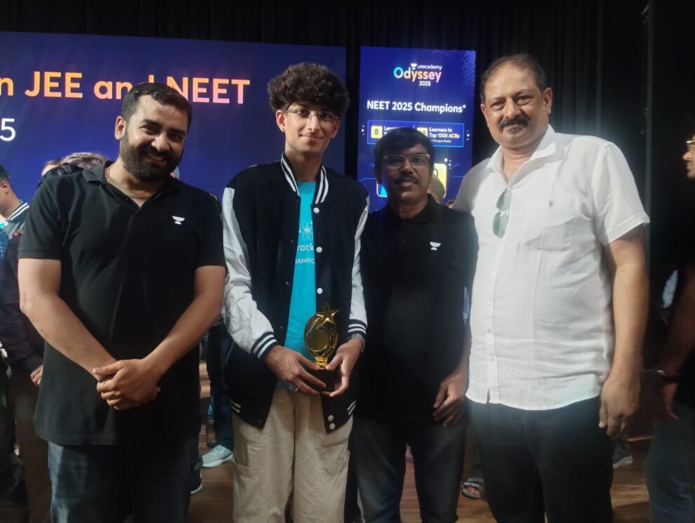 महरौनी। (ललितपुर)। पत्रकार राजीव सिंघई मोनू के सुपुत्र एकांश सिंघई ने जेईई एडवांस परीक्षा में अच्छा प्रदर्शन किया और आईआईटी में चयन सुनिश्चित किया। एकांश ने जेईई मेन में भी अच्छा प्रदर्शन किया था और 99.42 परसाइनटाईल अंक प्राप्त किए थे। राजस्थान के कोटा शहर में अनएकडेमी संस्थान ने नीट और जेईई के मेघावी छात्र छात्राओं का सम्मान समारोह आयोजित किया। जिसमें नीट और जेईई में अच्छा प्रदर्शन करने वाले छात्र और छात्राओं का स्मृति चिन्ह देकर सम्मान किया।